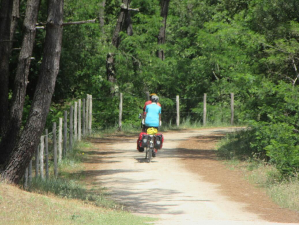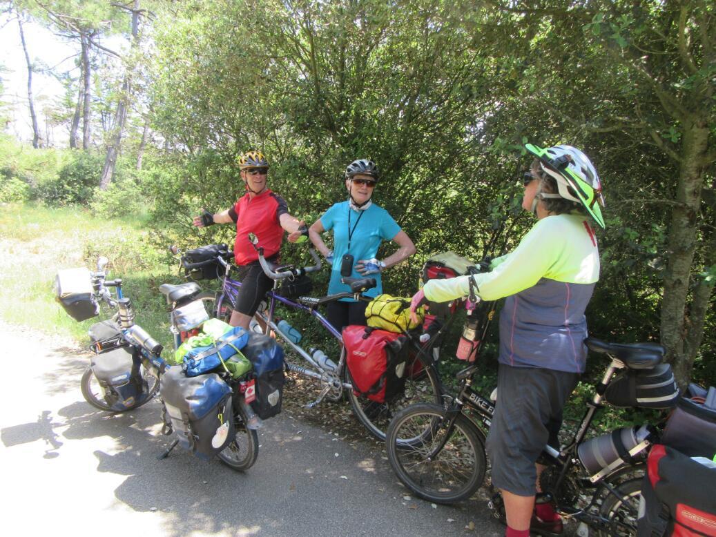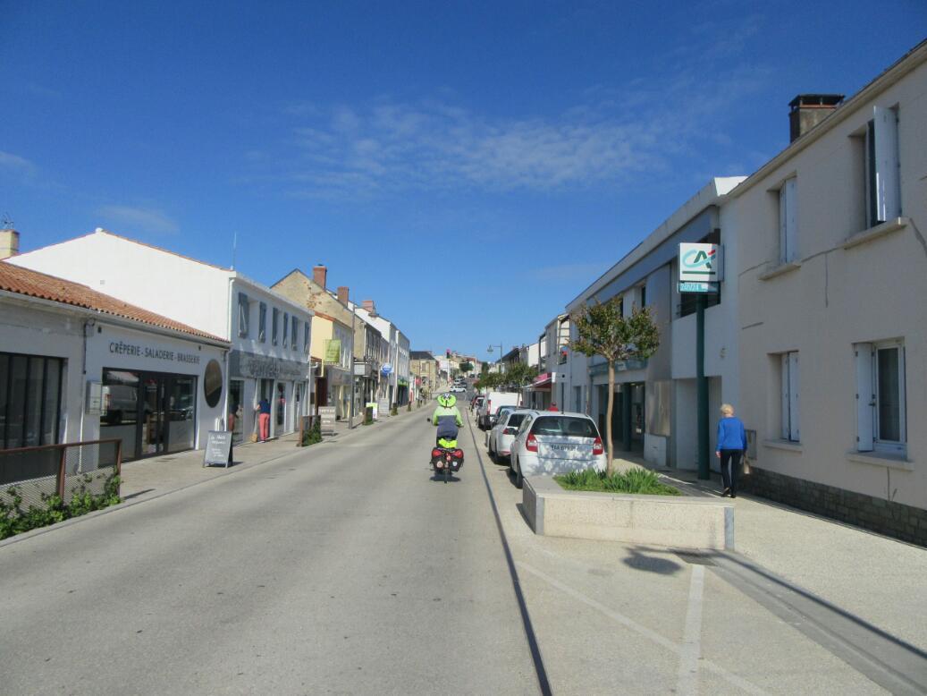 The other thing, though, was that we saw a D road (D979) that led from Talmont to Sable d'Olonne, bypassing the wiggly coastal Velodysee over a fair stretch. After our quick look at the chateau, we set off down that road. But D road travel in France is tricky. sometimes they are ok, but sometimes they are deadly. We quickly identifies this one as too risky to stick with. So we backtracked and found the quickest, safest way back to the coastal path.