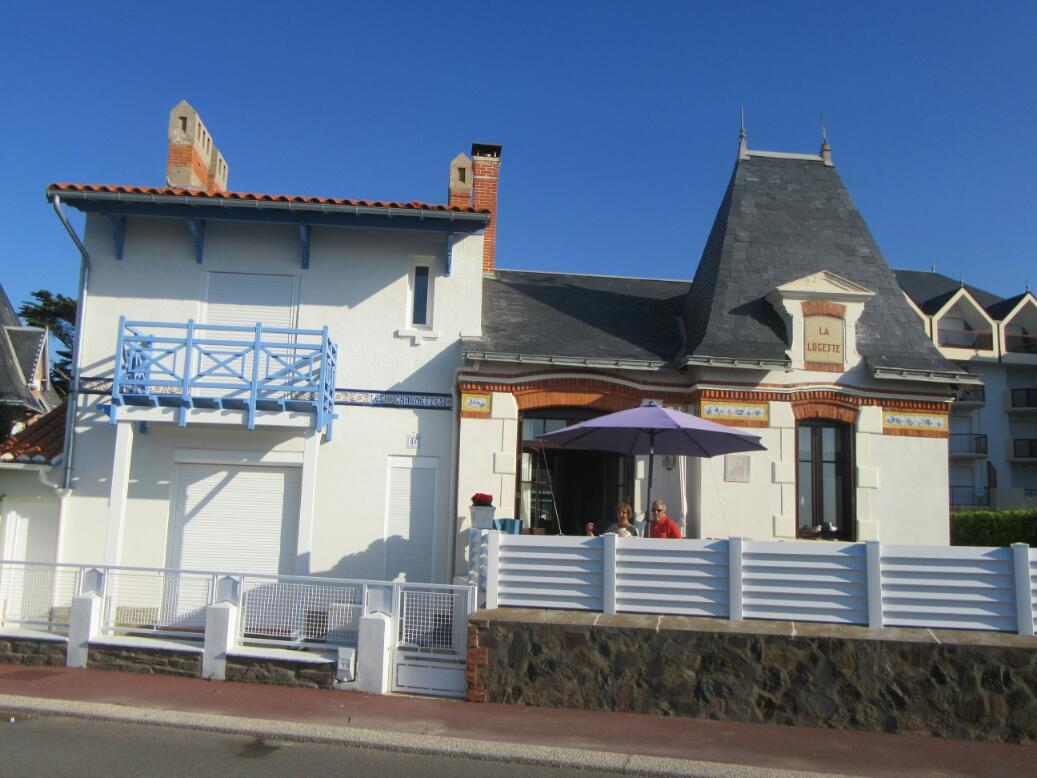 I formed this impression from lots and lots of examples, and decided that this was "it", until we rolled into Saint Gilles Croix de Vie. Saint Gilles is built around an inner harbour, and this is suitably lined with restaurants and some hotels. The buildings housing these were general nondescript ones. But outside of town instead of a return to the orange tile white wall standard we found a kind of Belle Epoch situation of many unique and handsome houses. I shot a few, to give the idea.