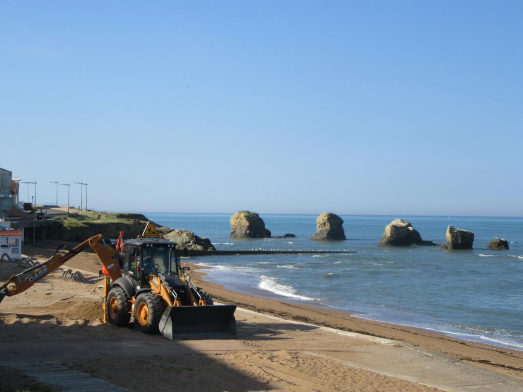 La Barre de Monts is located at the spot where an island, Ile Noirmoutier, most closely approaches the coast. There is a large bridge here, joining up the 20 km long island. Most interestingly there is another link, called Le Passage du Gois, which is only usable at low tide. Afternoon low tide here at this season is in the vicinity of 6 p.m.