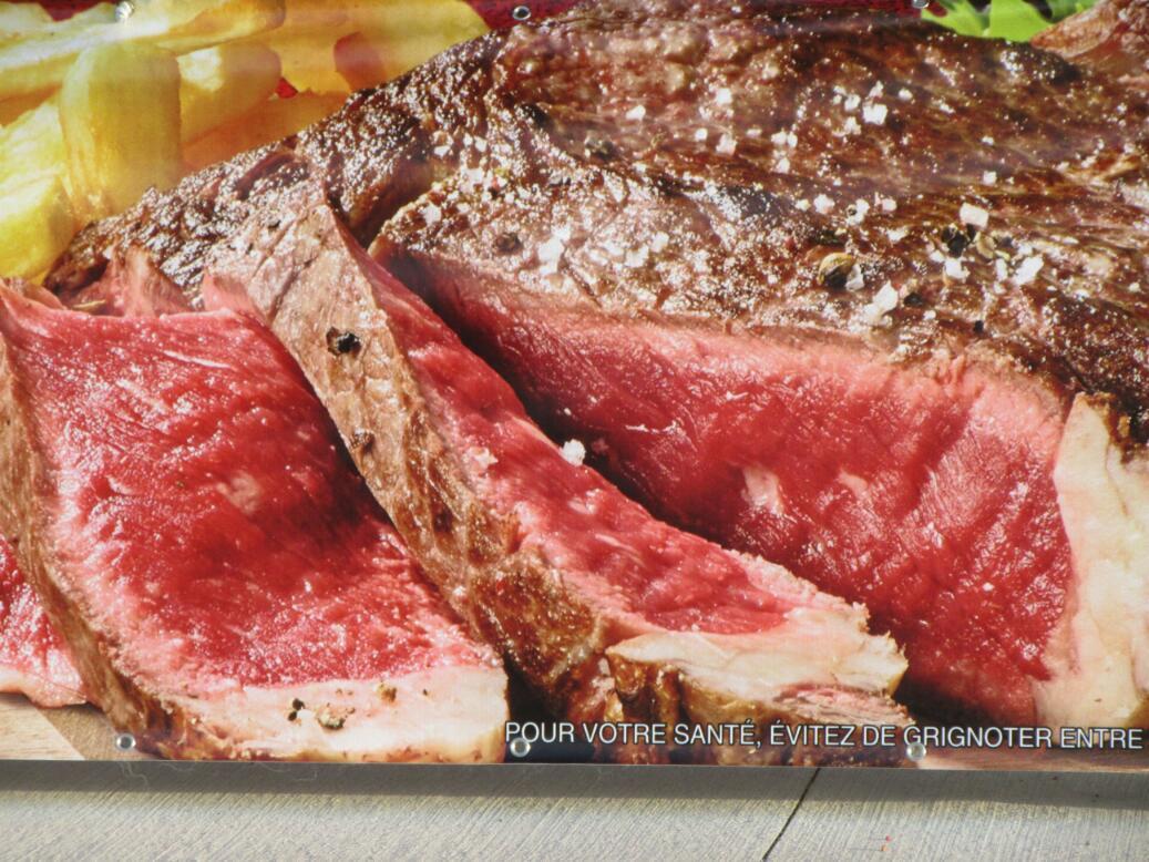 The box store district of Pornic where we found ourselves with the expensive hotel had a steak house that we passed on our way to finding the bike path. We were amazed that this restaurant was attracting clients with a lurid poster of a basically raw steak. We started off in ugly American (Canadian) mode then, failing to understand the hotel fees or the cooking (or not) practices.