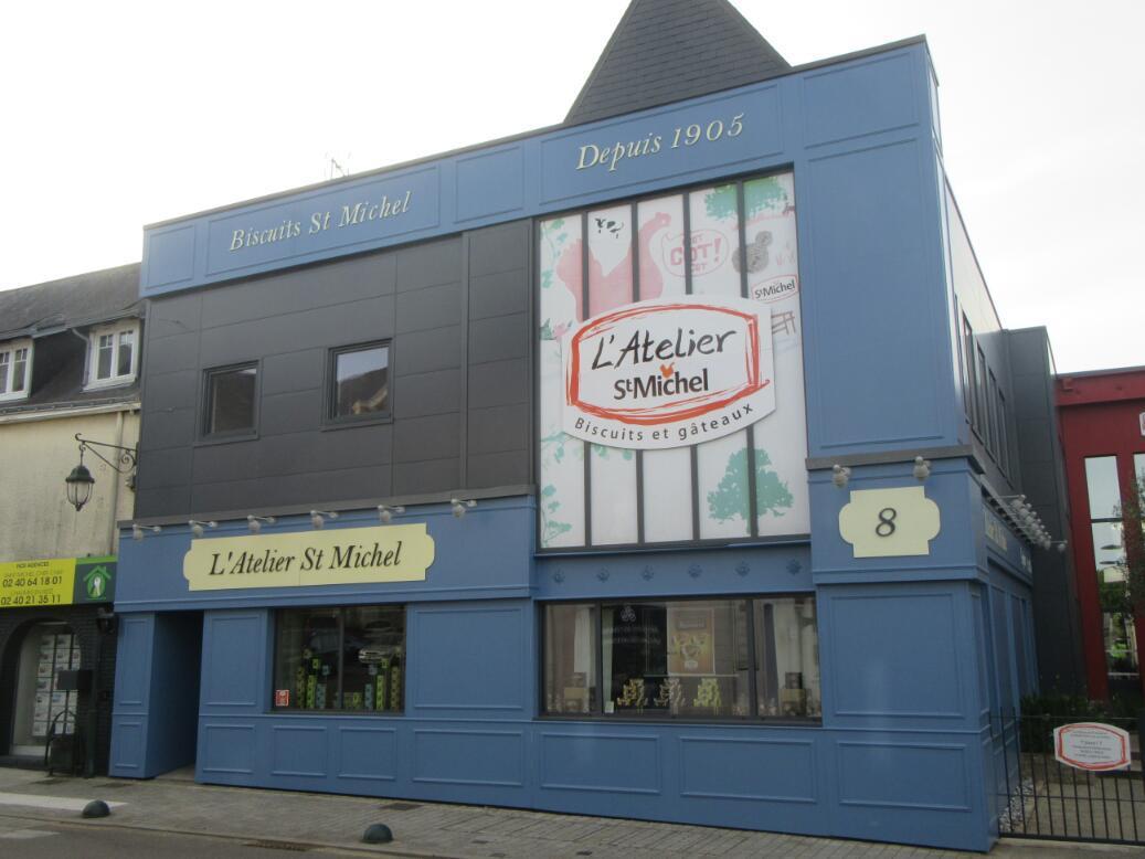 The branch of the veloroute that we jumped on took us to St Michel Chef Chef by a shortcut route, compared to following the shoreline. It was a bit freaky because there was no one about in the town. Good for car free, people free photos! Unfortunately we were also too early for the biscuit factory to be open. We did have a chance at it, since their sign said 7 days a week. On the other hand Sunday on Pentecost weekend is pushing it. It's too bad, because St Michel is an excellent brand of cookies, and we were operating on just one slice of Jeanette cake so far.