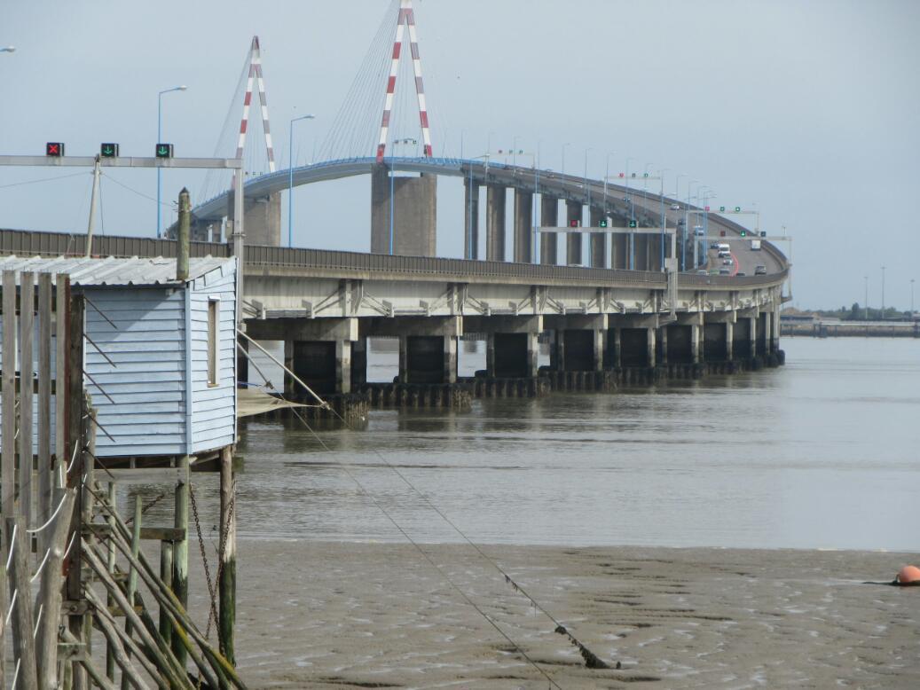 Given the high profile of the cycle routes going north, south, and east from here you would hope that to get the ball rolling there would be a good bicycle way to cross the river. Not so. The bridge it St. Nazaire is tall and has no bike lane. (The cycling group that Michel belongs to in Nantes got its start lobbying for that bike lane, but failed.) Many cyclist will opt instead to go 20 km up river to take the ferry at Le Pellerin. That will certainly be the way for us.