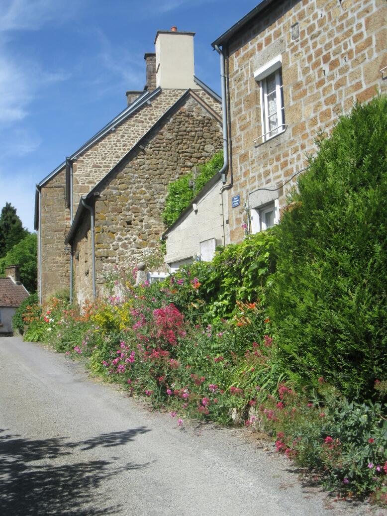 What followed was a route with ups and downs, but nothing that was going to stop or exhaust us unduly. Even better, thre were some actual towns along the way to look at, and all with attractive stone buildings and flowers all over.