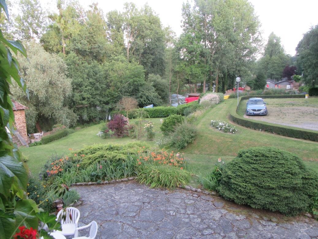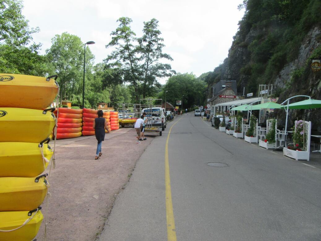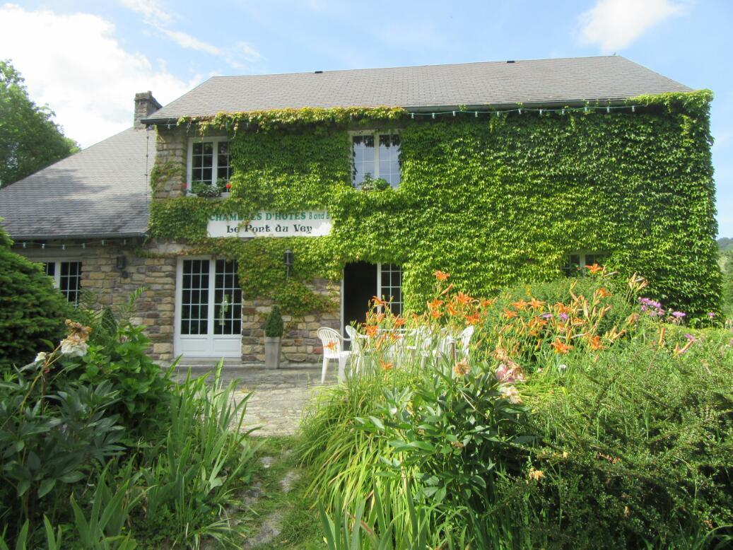 We came to Clecy by maybe a back way, not entering the town at all but running first into a nearby restaurant, kayaking, walking, ice cream play land along the Orne. At the bridge where the play area begins (the Pont du Vey) stands a beautiful house containing a chambres d'hote. This has four rooms, and we nabbed the last one. Because of this we never went to the actual town, and tomorrow our route will take us away from it.