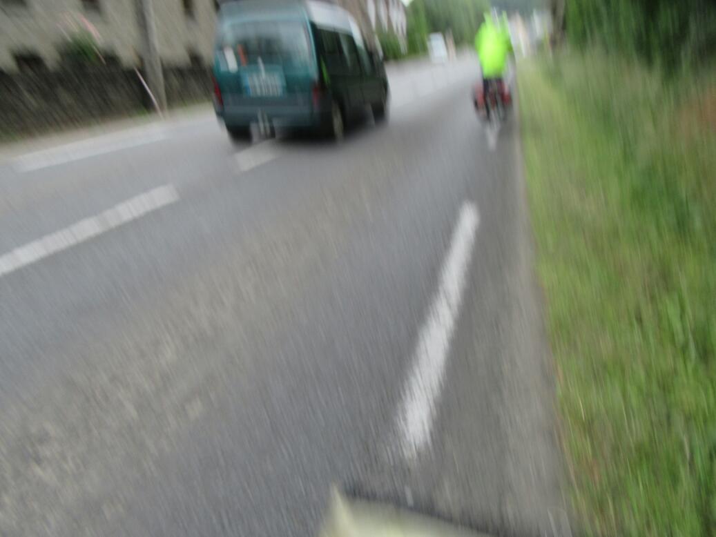 Everything was swell for about 2 km, when the shoulder disappeared and the innocent D road became a four lane highway with a 110 km speed limit. We got off the bikes and walked them on the white line, with us in the grass. Damn.