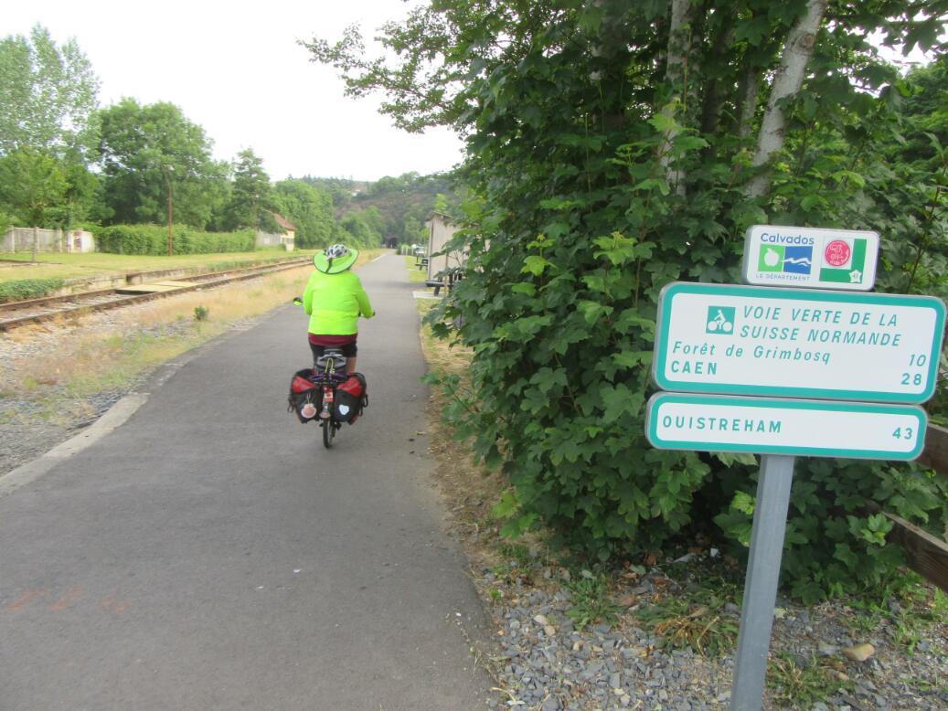 At Thury was the beginning of a perfect and quite new route verte rail trail. This zipped us 20 km straight to Caen. What a relief!