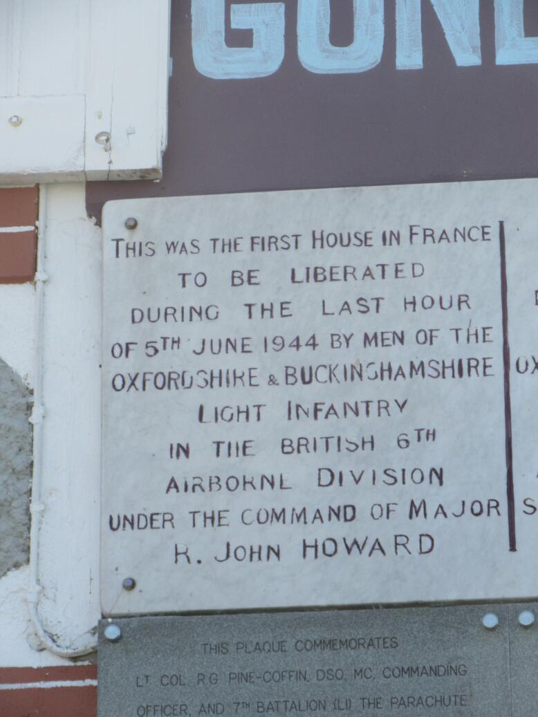 On the night before the D Day landing there was a need to gain control of certain bridges and protect them and to blow up others. This bridge, just a short distance from the coast at Ouistreham, was to be protected. British paratroopers came in on gliders to do this. Many gliders had to crash land, but in fact the bridge was saved. The winged horse Pegasus was the emblem of the 6th British Airborne Division, who landed in Horsa gliders.