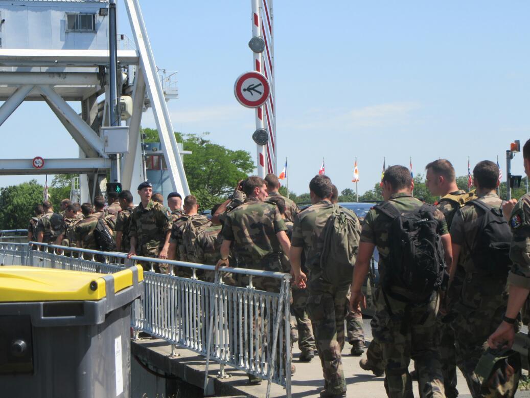 Beside the cafe, for some reason, was a platoon of French marines. Seeing soldiers here definitely added to the historical feel. These soldiers, though, first took pictures of each other in front of the cafe. Later, they properly and authentically marched over the bridge.