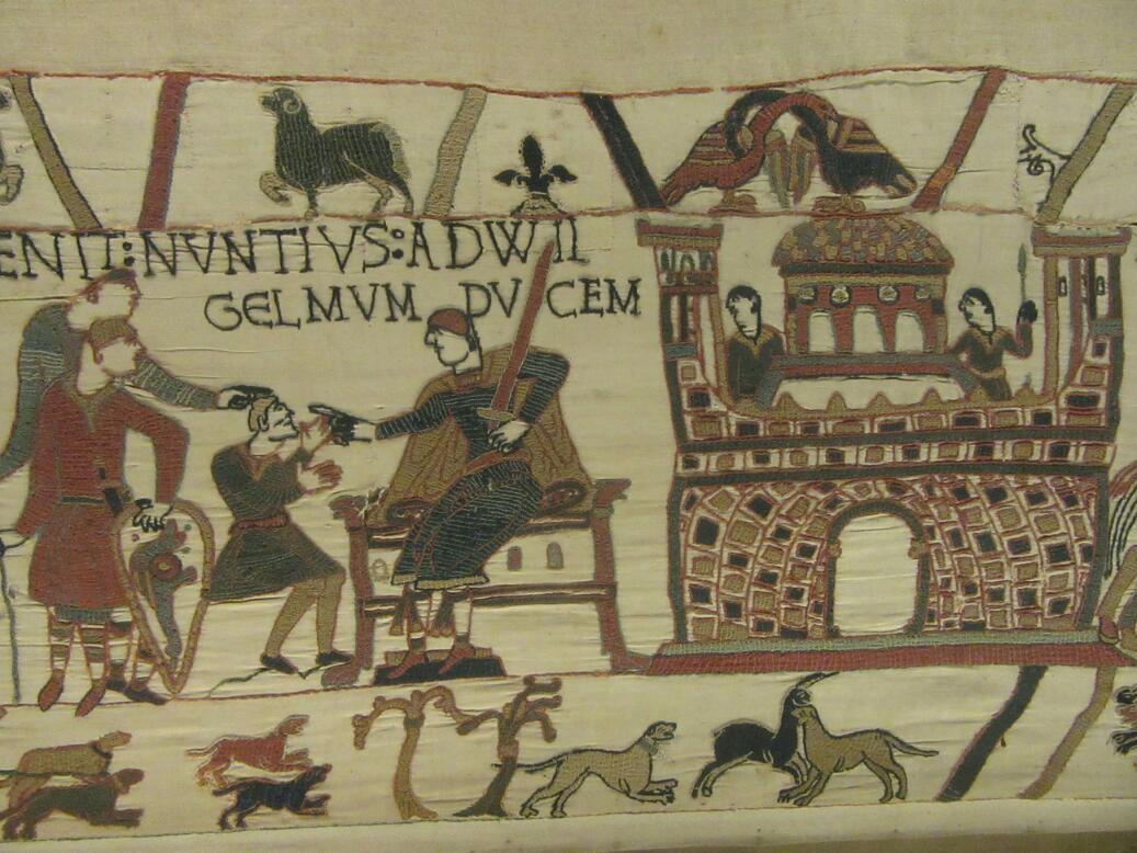 Yes, but what about the tapestry? The tapestry was commissioned by William's half brother Odo. It tells the story of the conquest just like a comic strip, in numbered panels. The thing is constructed of linen backing with wool embroidery, and is 70 meters long.
