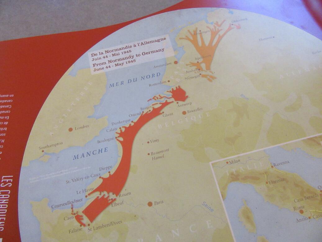 There was even a further, temporary exhibition, but we did not have the emotional energy to even see what it was. We did of course have the energy to check out the gift shop. We picked up a book called the Maple Leaf Cycling Tour. This invites you to follow the Canadian troops through Normandy and on towards Belgium and Netherlands. The Canadians never went to Berlin, but were assigned to go north-east. That is why when we are in Holland we often hear how the Canadians were their liberators. Maybe next time we will follow this book's tour.