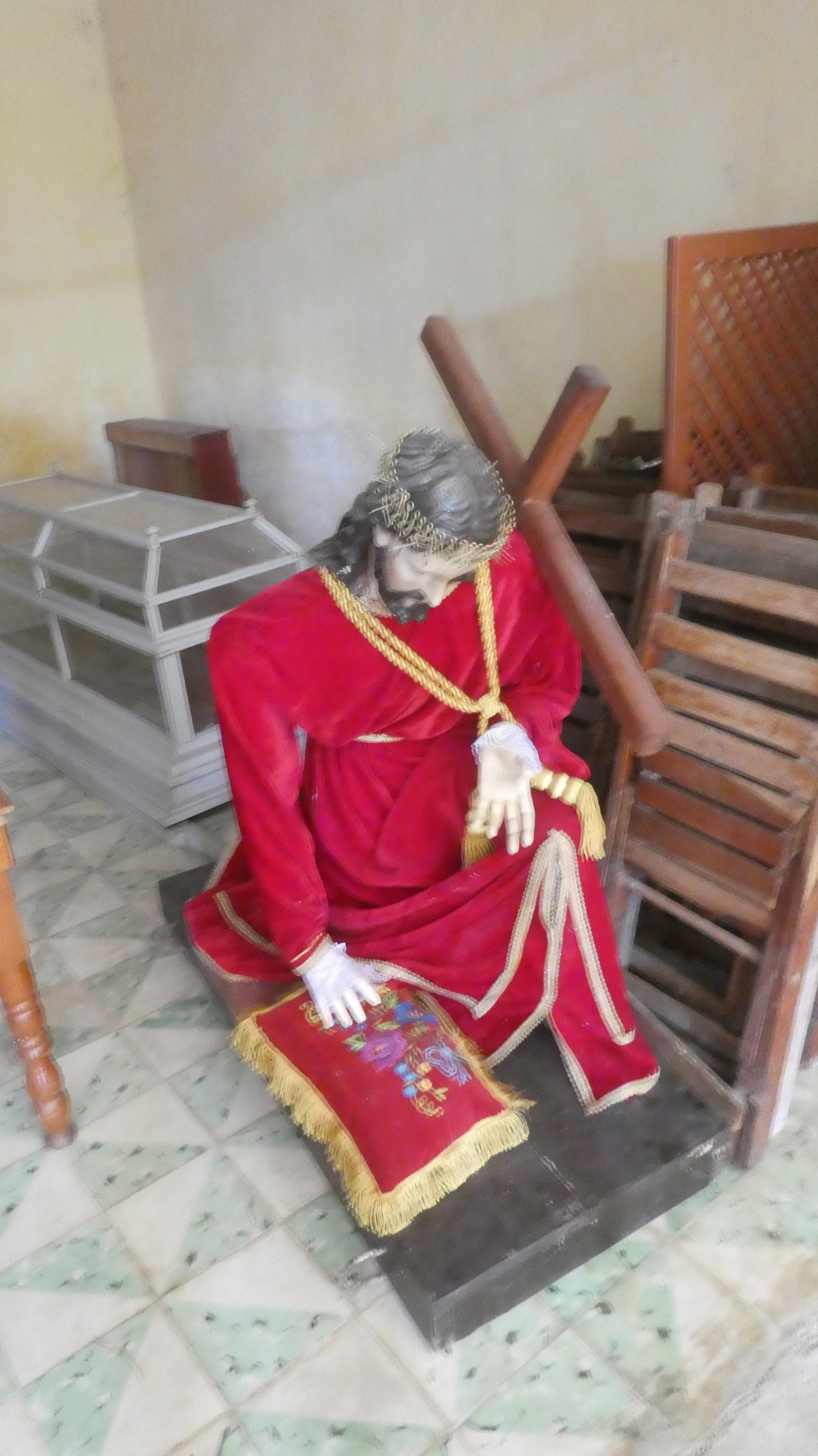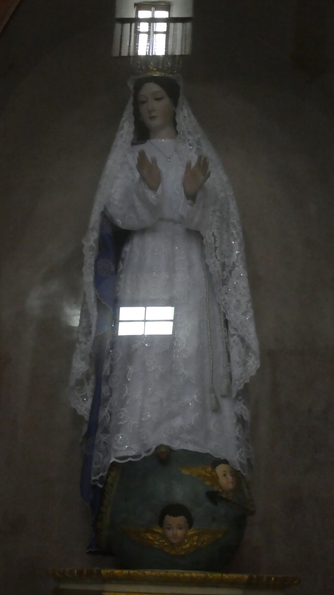 The church interior also also had relatively bare walls. But it too had a well dressed virgin.