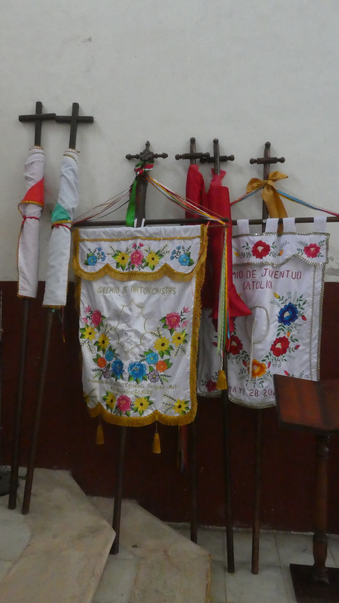 In the same room with the Carlo photo were banners that are surely used to carry in procession.