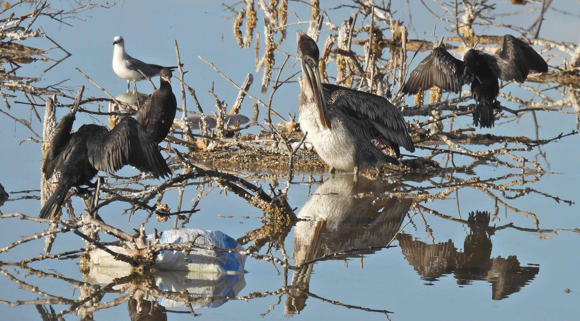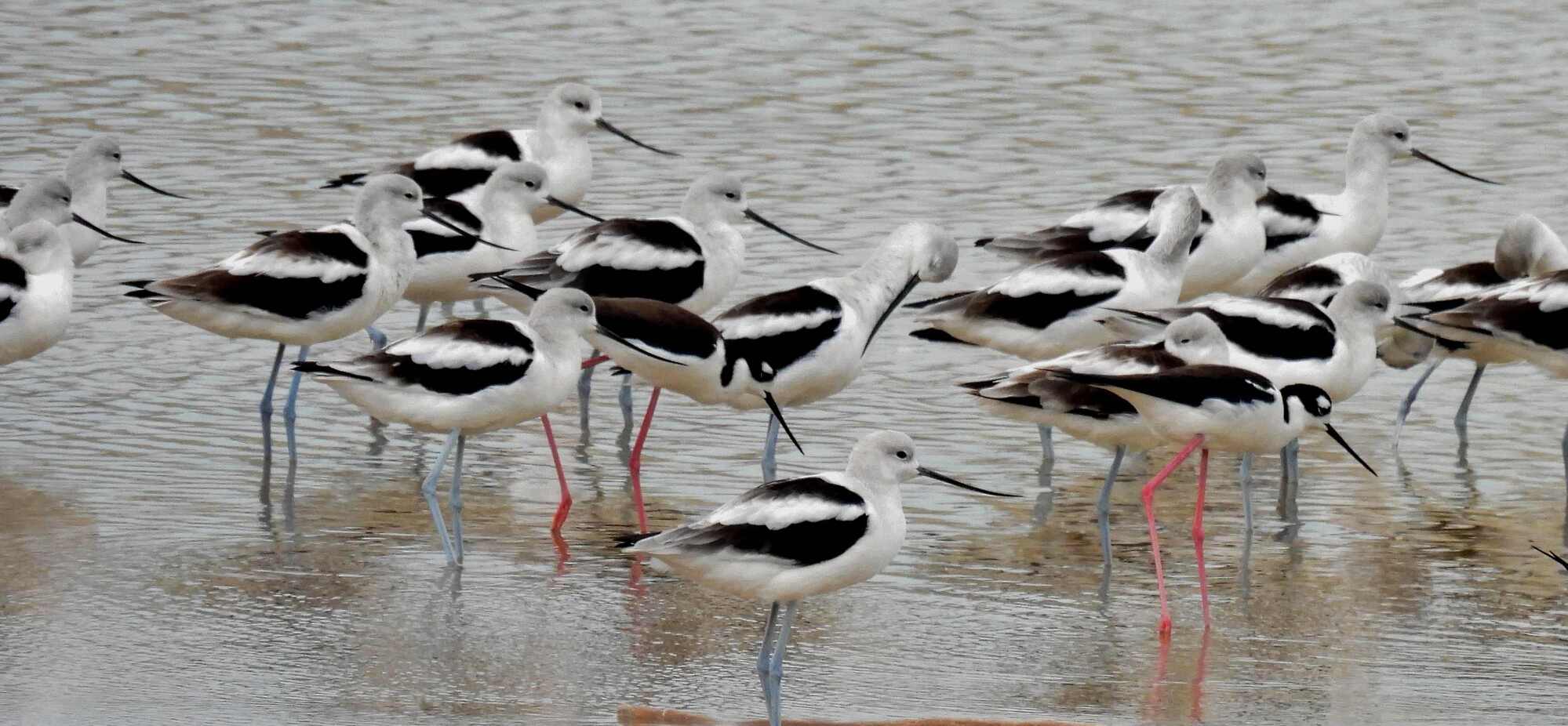 Usually, we try to isolate a bird and present just one in each photo. But of course photos of flocks are a thing as well, especially when it's photos or video of flocks in flight. Here there was a chance to have sort of artistic compositions of multiple birds or multiple species, like this:
