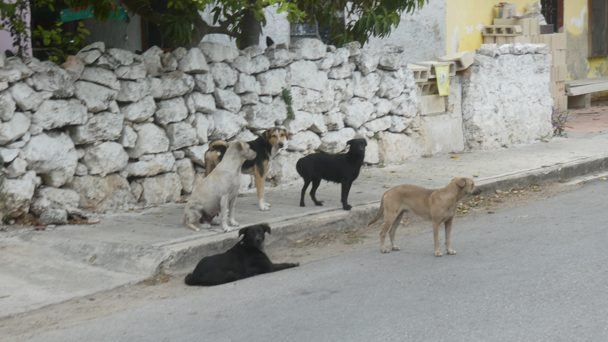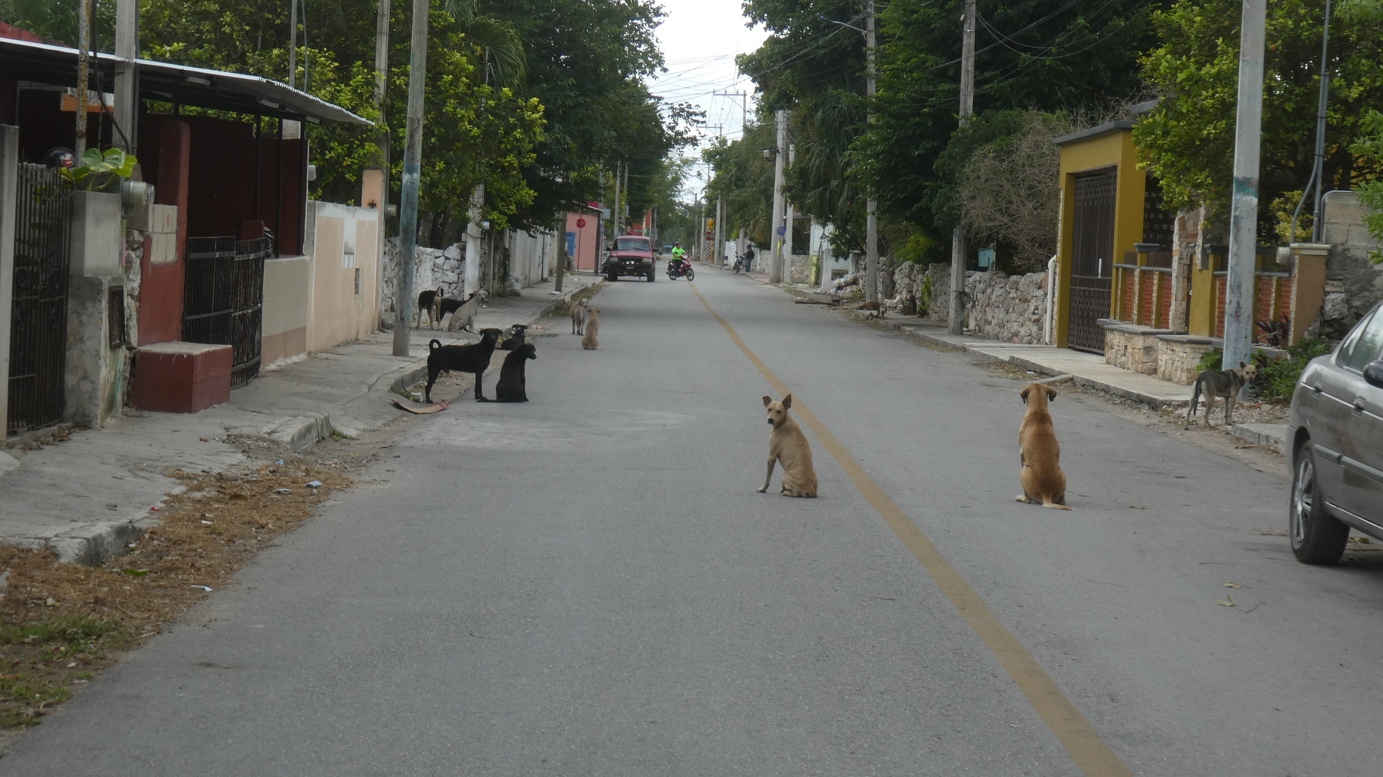 The first thing we noticed on arriving in Chicxulub Pueblo (the inland match to Chicxulub Puerto) was the number of dogs. I think there are 9 dogs on the road in the first photo below.