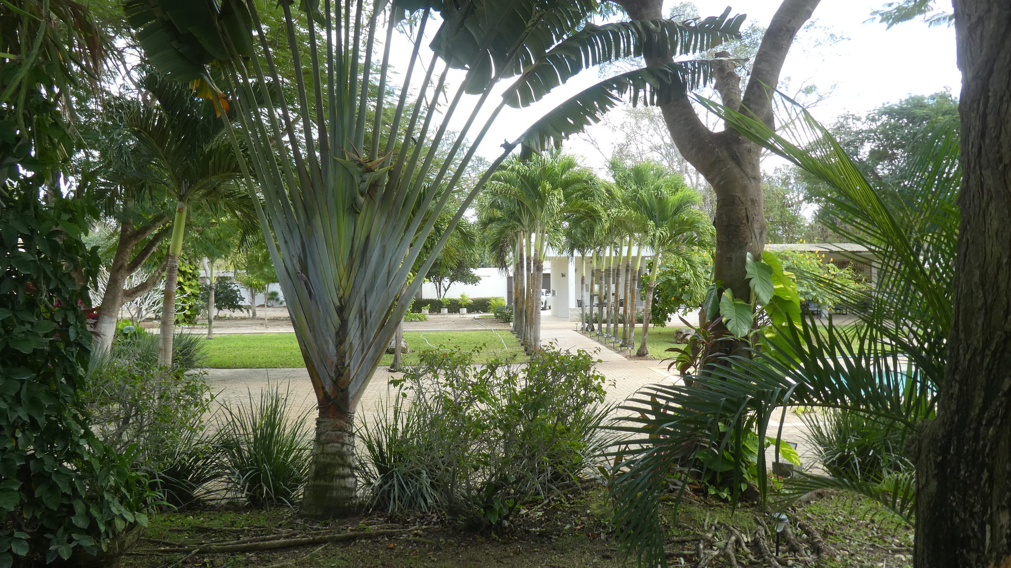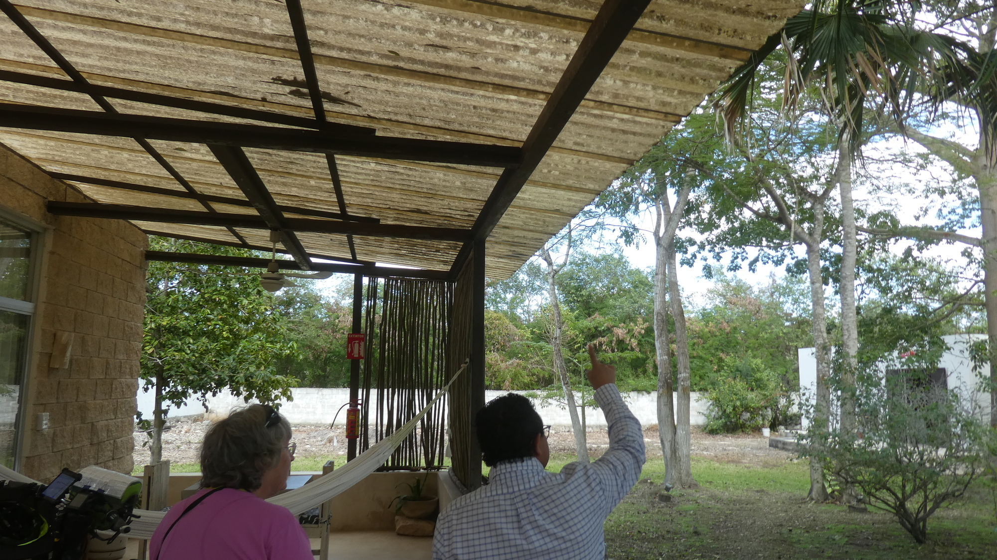 We had arrived in Conkal really early - before noon - and had used as much time as possible with the likes of the church visit. But now we contacted the hotel, Casa de Campo Conkal, and they were kind enough to let us in at 12:30. This place is one of costlier ones on our itinerary, but it sure is nice. The whole large property is enclosed by a wall, and a little like the Santa Clara, the accommodations are a series of bungalows. The place is distinguished by beautiful landscaping and a giant pool. Also the owner is a birder, and he sent us to our room with a copy of "Birds of the Yucatan Peninsula". We actually have that at home, but judged it too heavy to carry around. It has accessible large illustrations, and we noted for better - or worse that we have so far spotted about half of the birds shown.