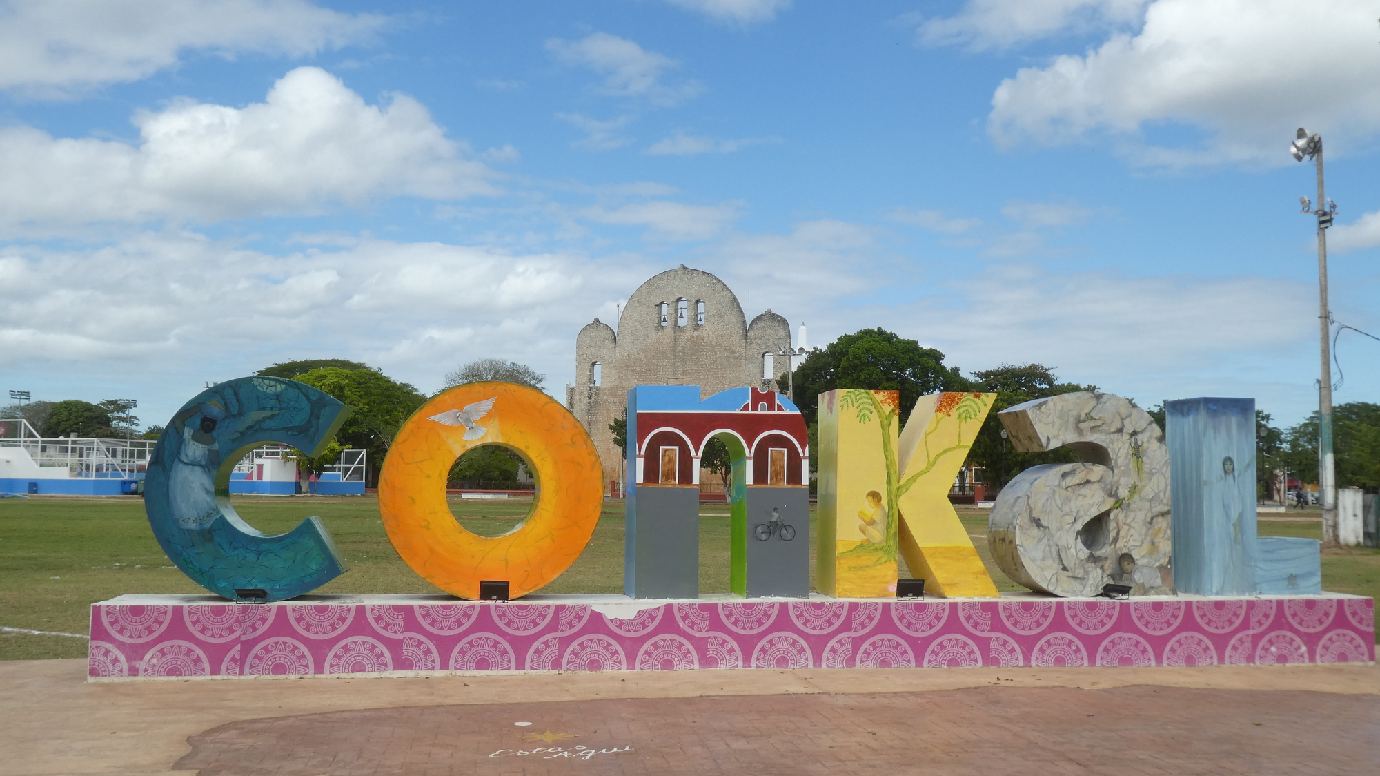 The centre of Chicxulub Pueblo had most of the necessary components, like the colored sign, church, benches, probably the dental office, health centre, and miscellaneous vendors. I was going to say it was missing the ayuntamiento (city hall), but I see it in one of the photos. So, good.