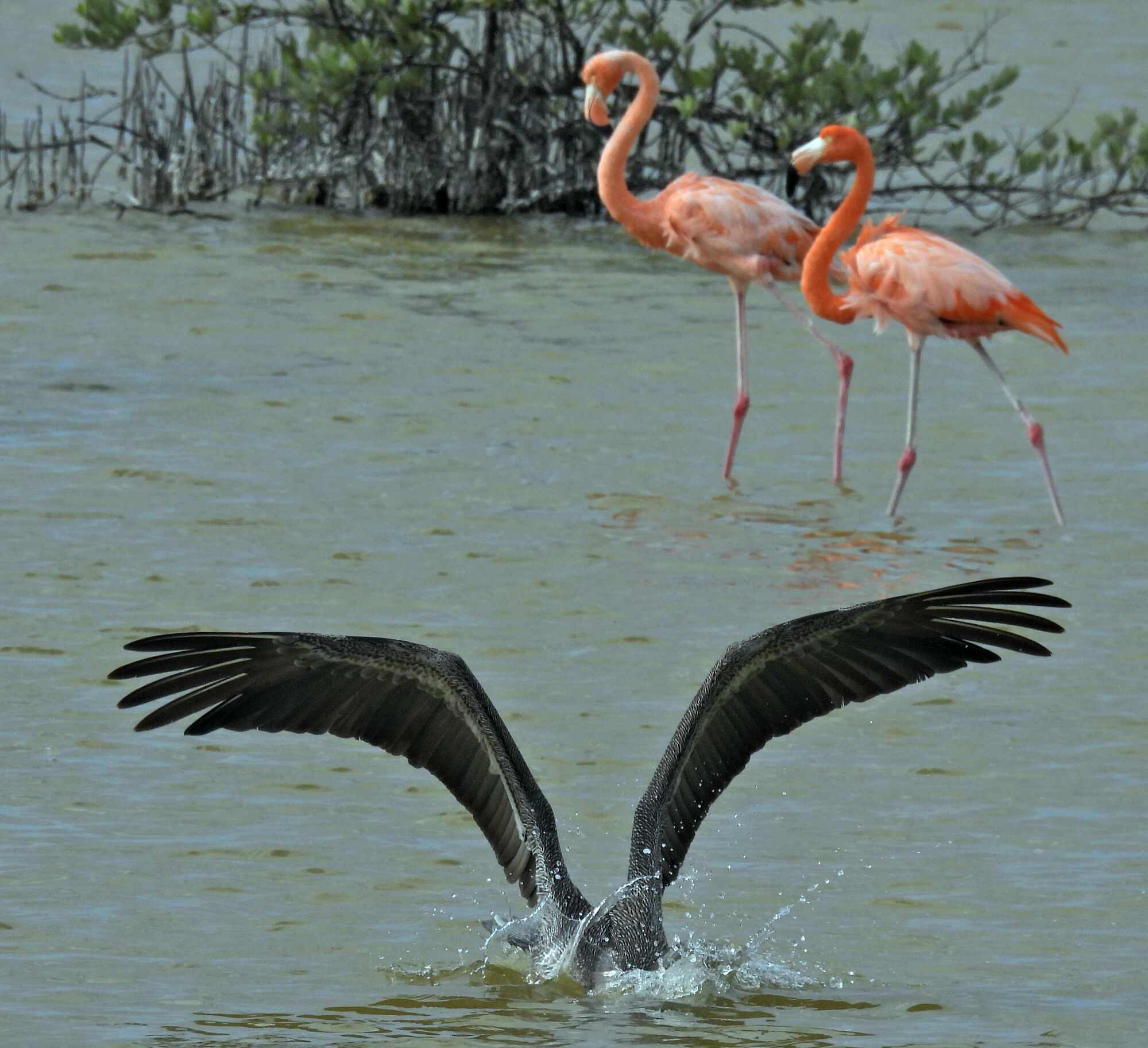 This shot is also impressive, but the reflection is doubling the number of birds: