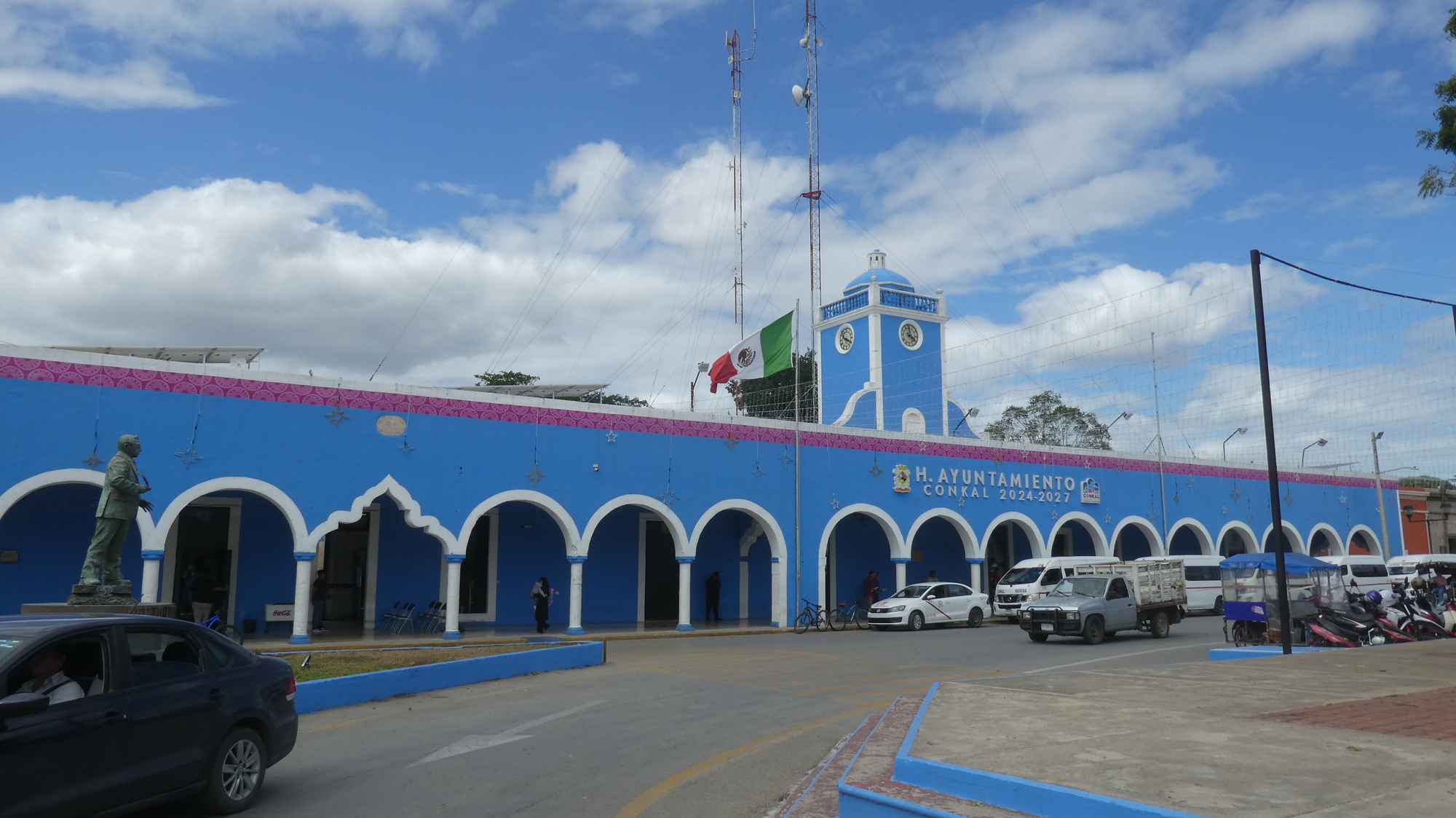 It's not far from Chicxulub Pueblo to Conkal, and we found ourselves in their square as well. This time the ayuntamiento was really easy to spot, as it is a bright blue: