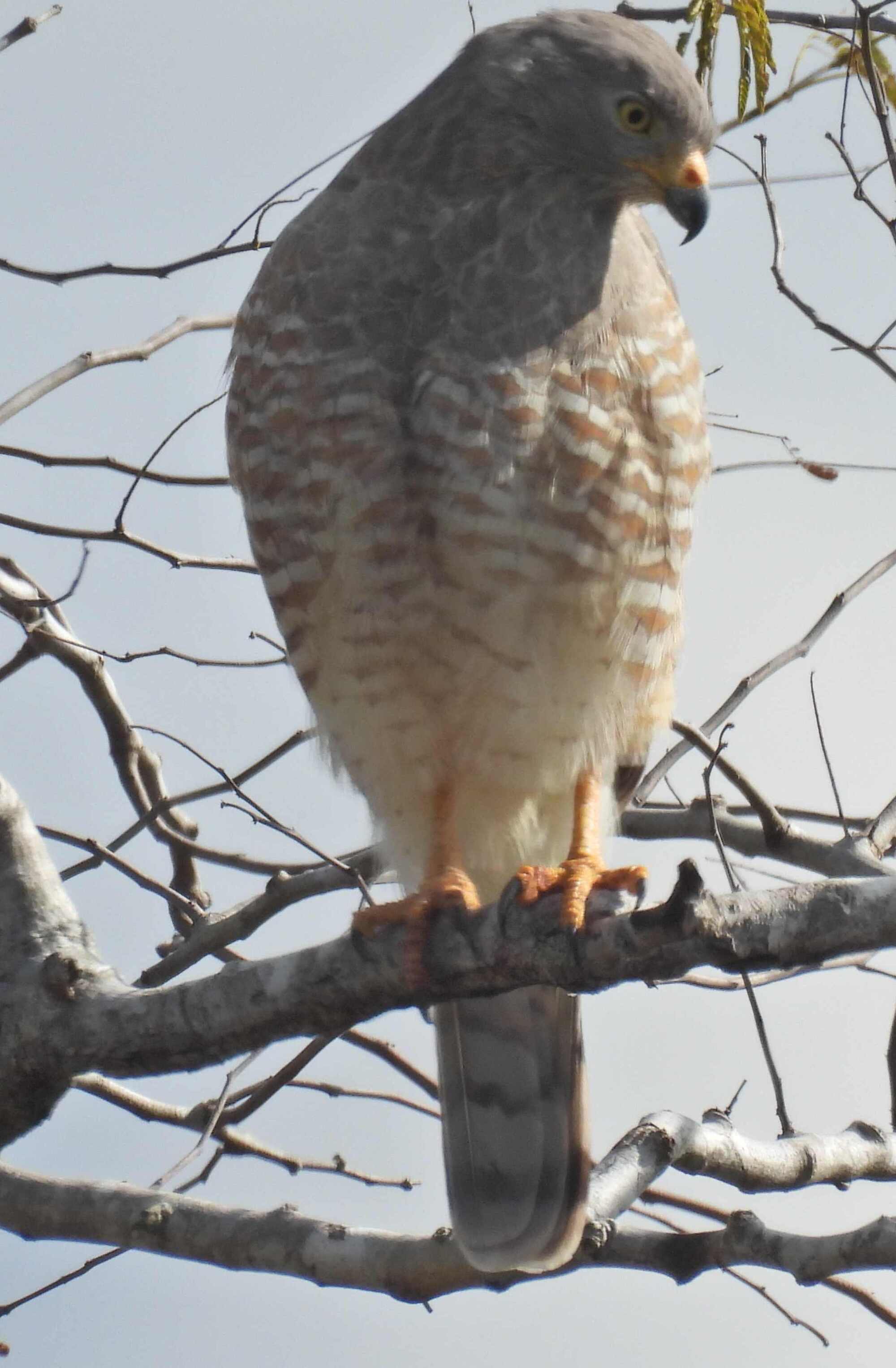 And yes, something like that did turn up, and screamed at us from a top branch. It was a Roadside Hawk: