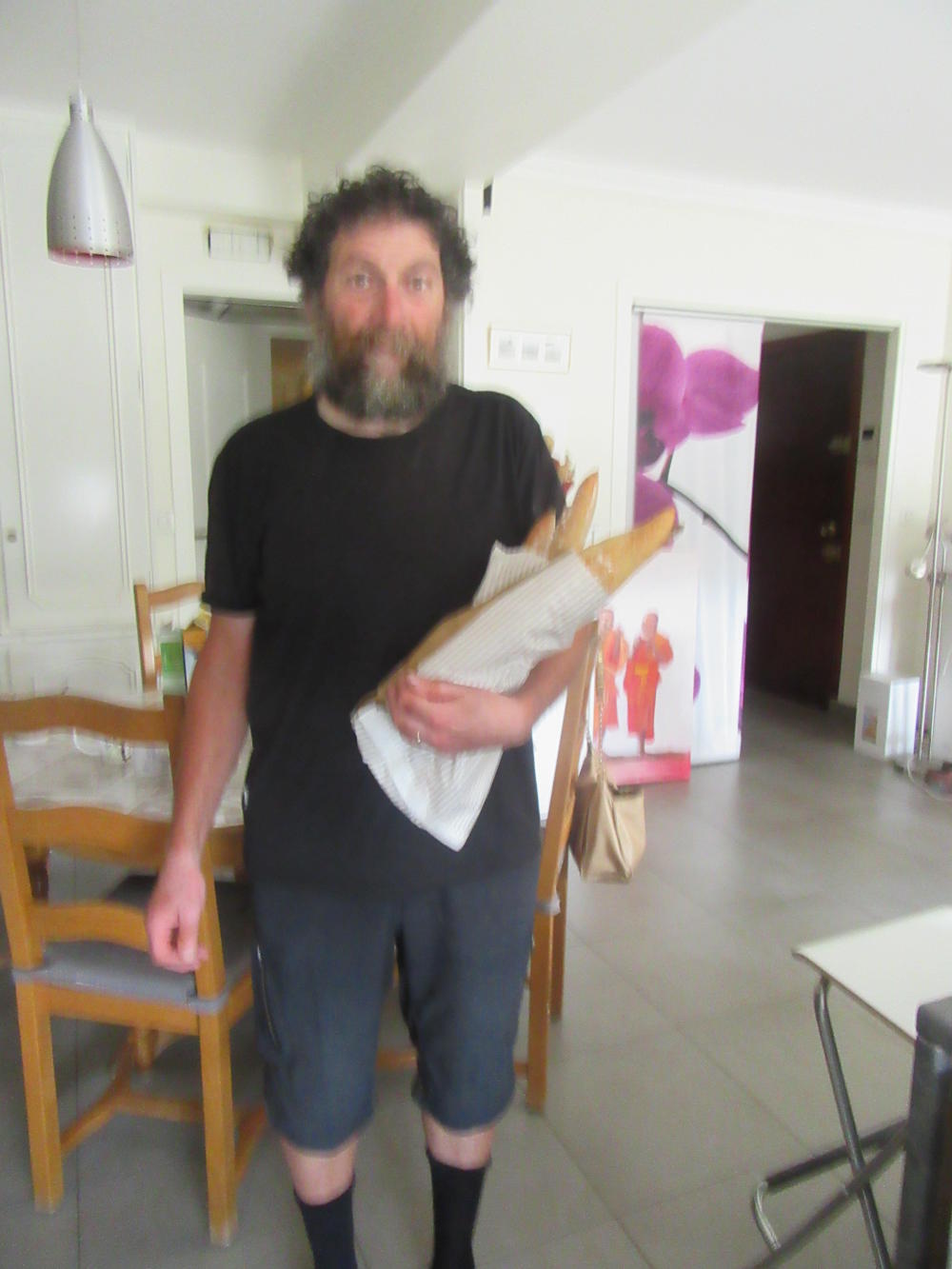 Walking back with four baguettes sticking out of a bag was really French, I thought.