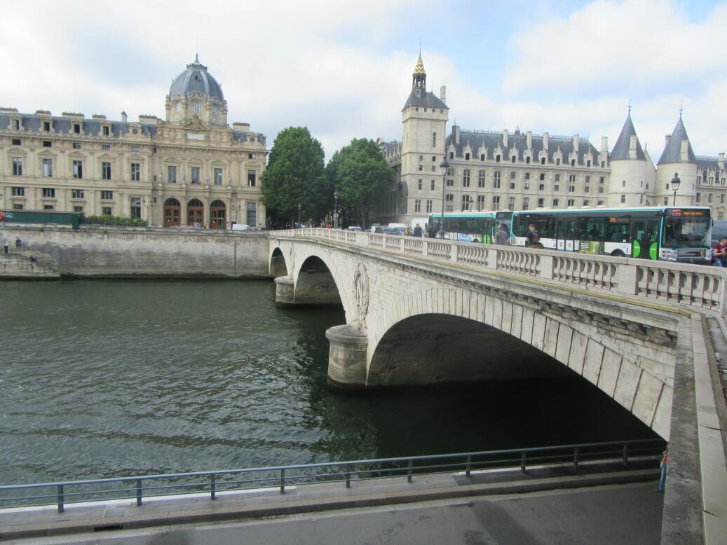 Many modern cathedrals have acquired a large tourism component to their existence. But the same token, many also retain a "holy" atmosphere, and still hold masses. Sainte Chapelle is not like that, being as far as I can tell a purely tourist thing. That would account for a gift shop in the lower chapel, taking up about 10% of the total floor area. No problem for us tourists though. We bought there a child's guide to Paris, which as always, should be just about our level.