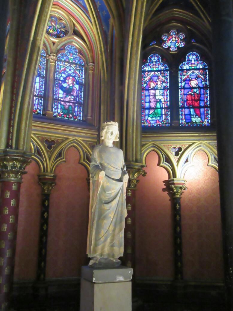 Theree months ago we also could not get in to the Sainte Chapelle, for some lame reason. But this time we could. The Sainte Chapelle is in what was the Palais de la Cite, the palace of the kings from the 10th to the 14th century. Now the main palace is repurposed as the Palace of Justice, but the Sainte Chapelle is still there.