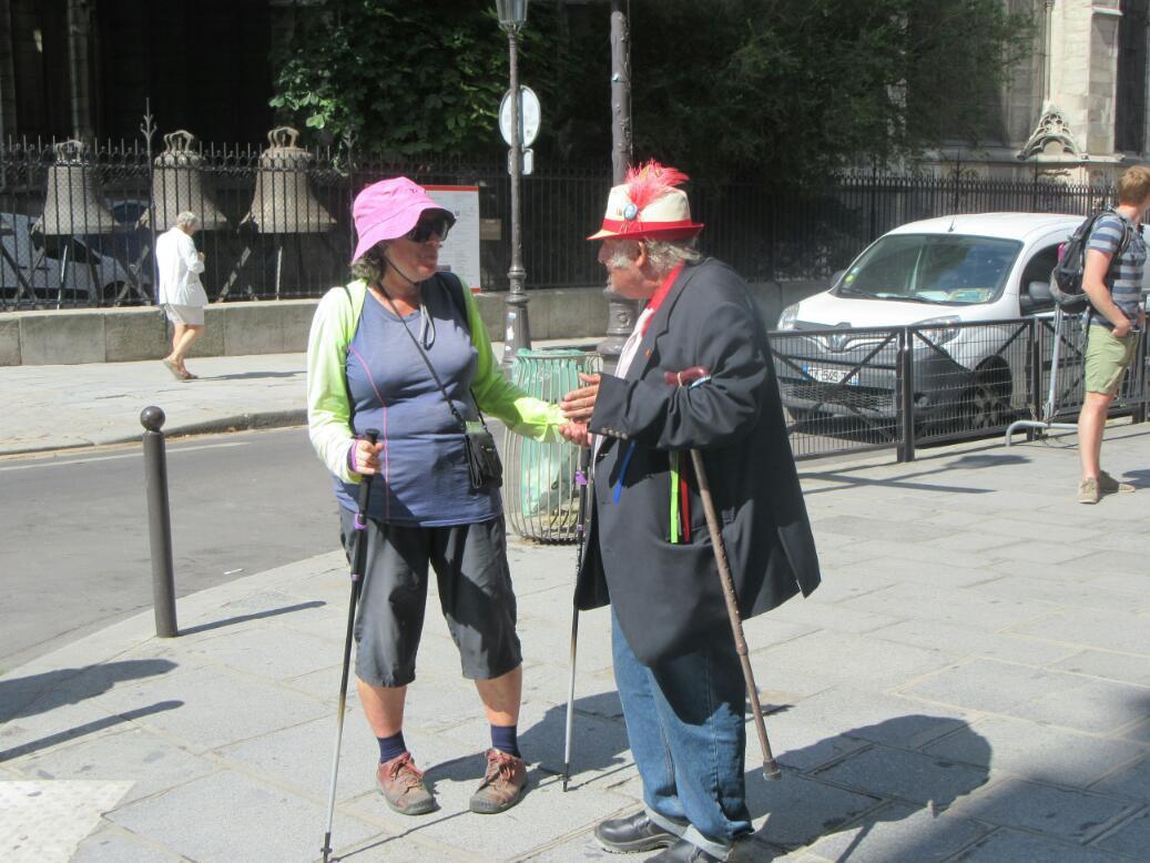 The scarey thing, documenting the meeeting with a photo I realized that Dodie and I are a "funny little couple", and you will see in the photo that neither Dodie nor the man is the funnier one, especially on the elegant streets of Paris.