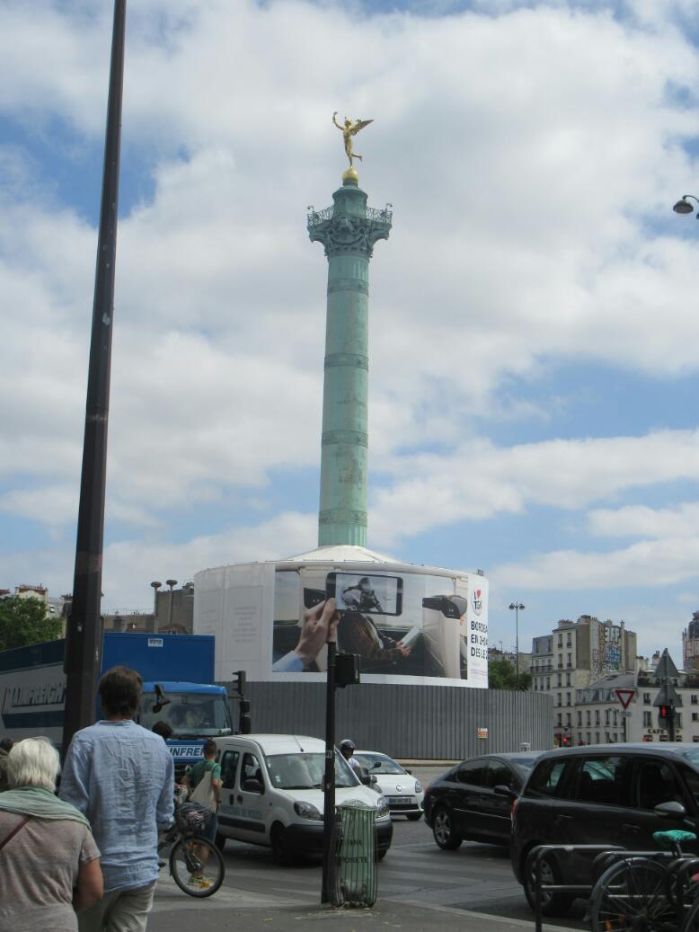 We betrayed our relative ignorance by only now finding out that the Bastille no longer exists. It was not only stormed in 1789, it was destroyed. Wow, talk about being crabby about a building!