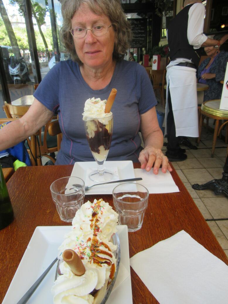 We went for ice cream, which properly should be our last calorie orgy of the trip. Dodie got Poires Belle Helene, of course.