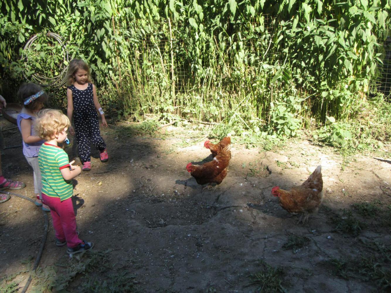 Once at the farm, there was no sign of collapse from the kids. Rather it was off to see the chickens and collect eggs.