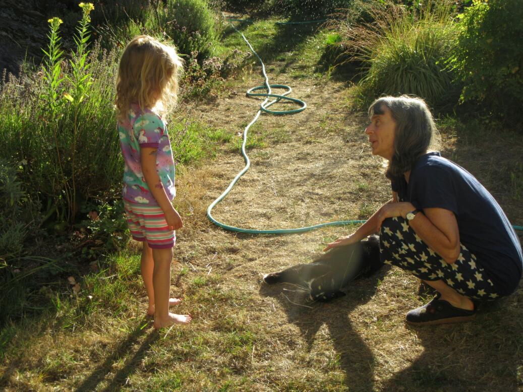 Karyn and Erhard are great gardeners, so early morning at their place has a special quality. Here are Amelia and Karyn out in the garden.