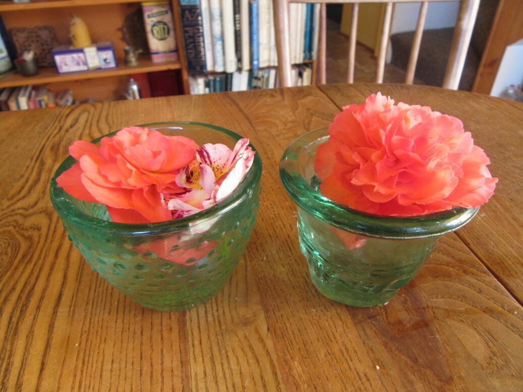 Some flowers got "inadvertently" picked, but no matter, they were enshrined in water.