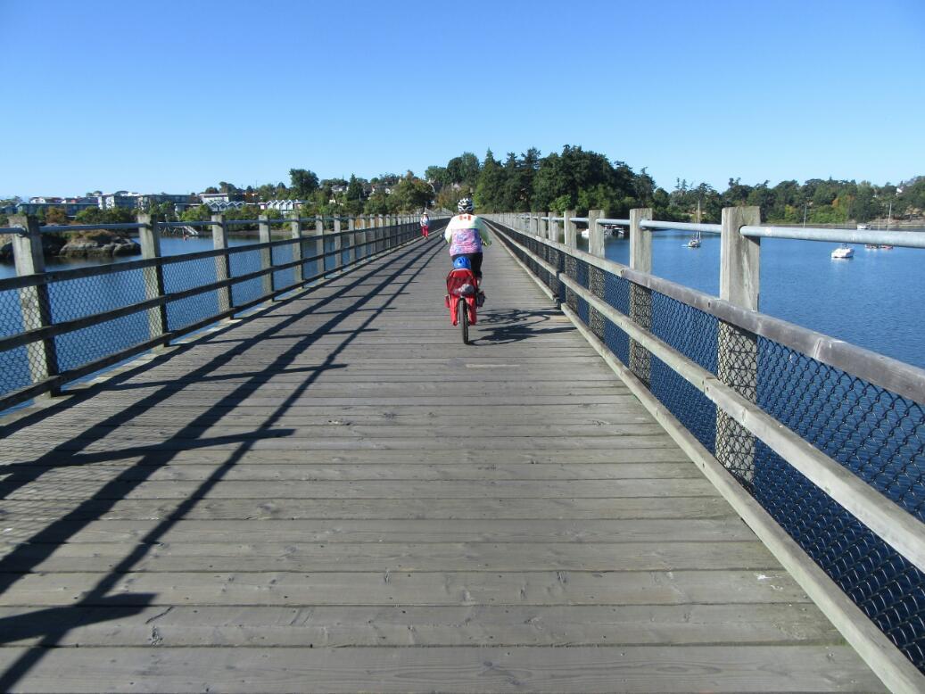 And here it uses an old railway trestle across the Inner Harbour.