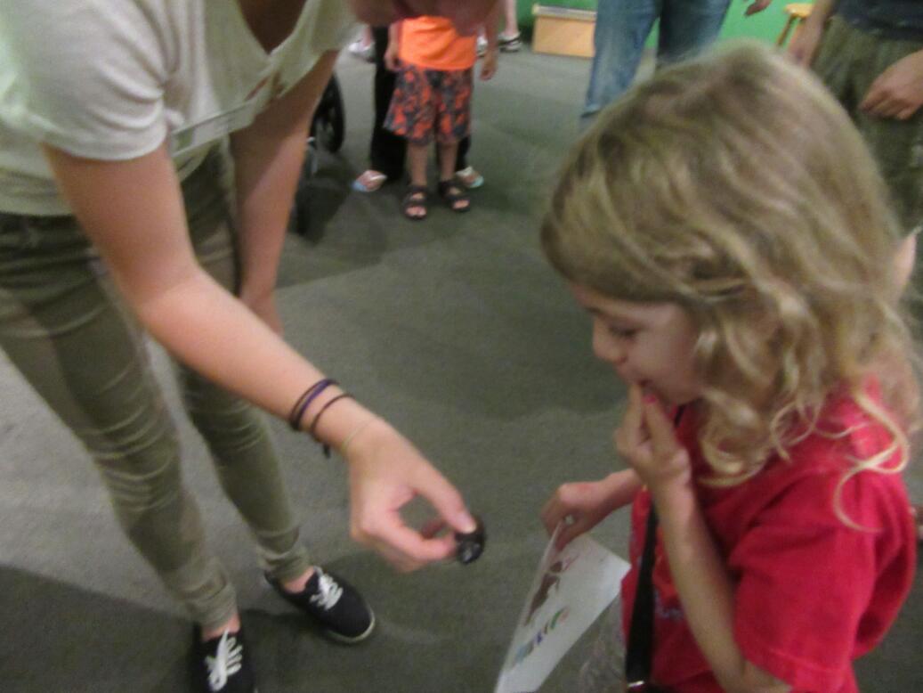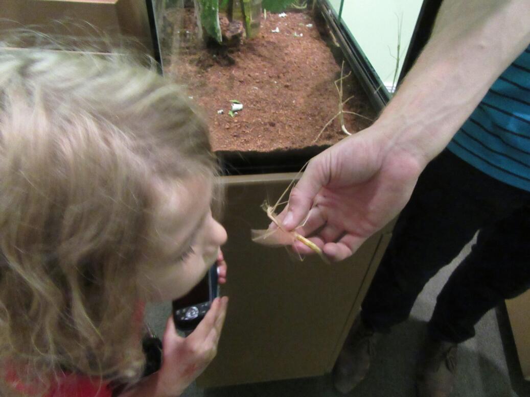 Aside from the Fol Epi, the big attraction for us in Victoria was the Bug Zoo. This small but interesting place features mostly stick insects, leaf insects, tarantulas, roaches, and beetles. A good feature is that they will take them out, demonstrate that they are not harmful (in the cases when that is true), and sometimes let you hold them. With spiders, particularly, I am not on board. But Evee, too young to hold a Tarantula was fine with patting a discarded skin. By the way, the reason kids can not hold them is that they are delicate and could get seriously hurt if dropped.