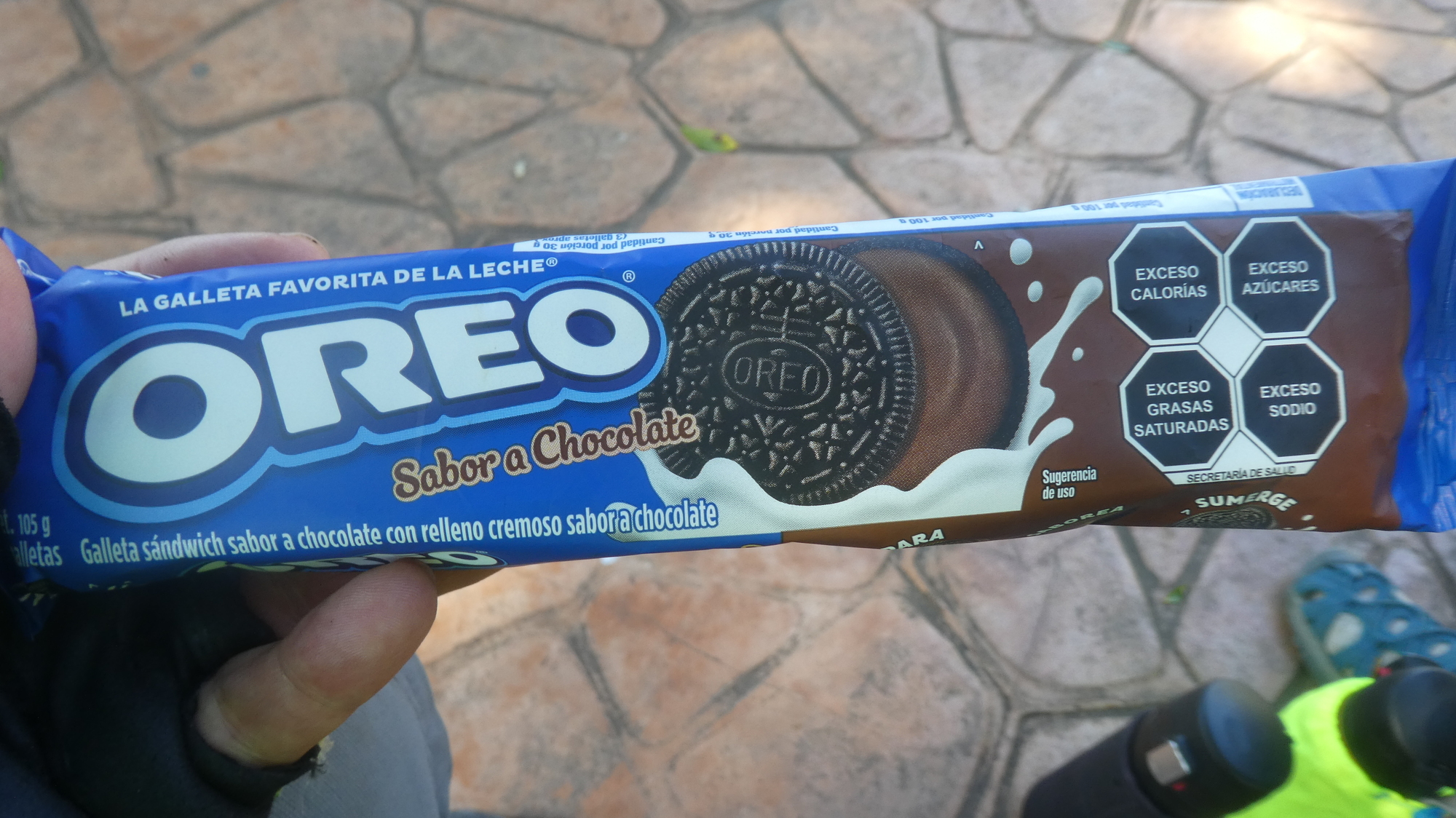 To build up our strength for the fairly long remaining ride, we had water with some remaining Marnie salts, and also Oreos. We usually stick with treats boasting three black marks against them, but Oreos is a four mark powerhouse. It does it by adding the excess saturated fats!