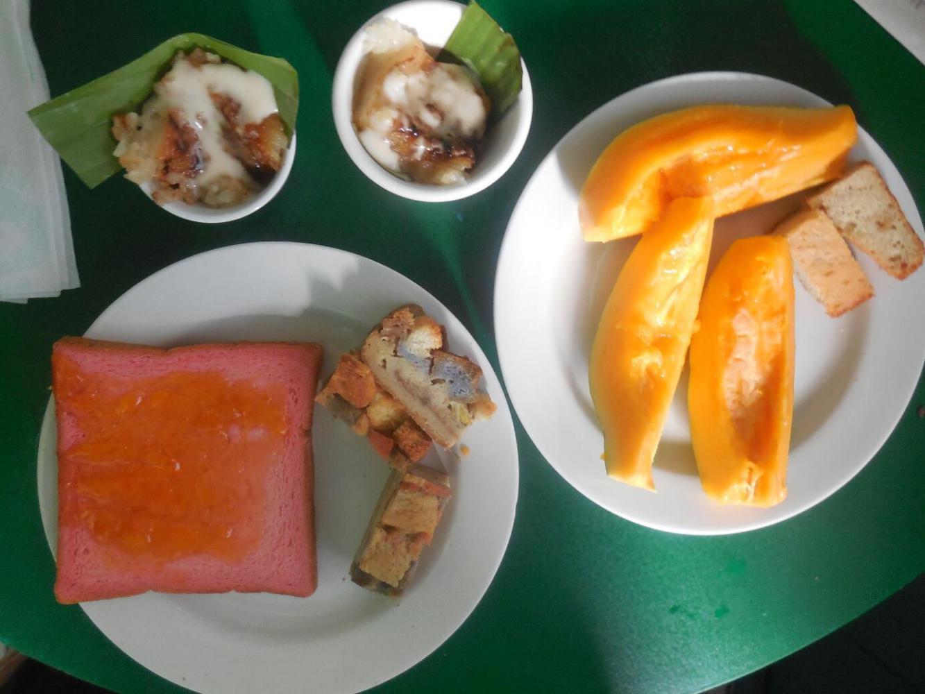 We loaded up on as much breakfast as possible, to be fortified for the coming ordeal. I took a photo this time to illustrate what is available. Yes, that is pink toast, and if you look closely, the bread pudding has blue bread!