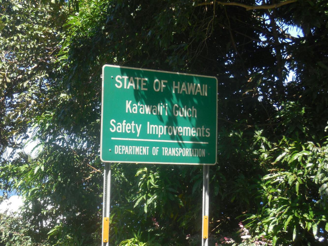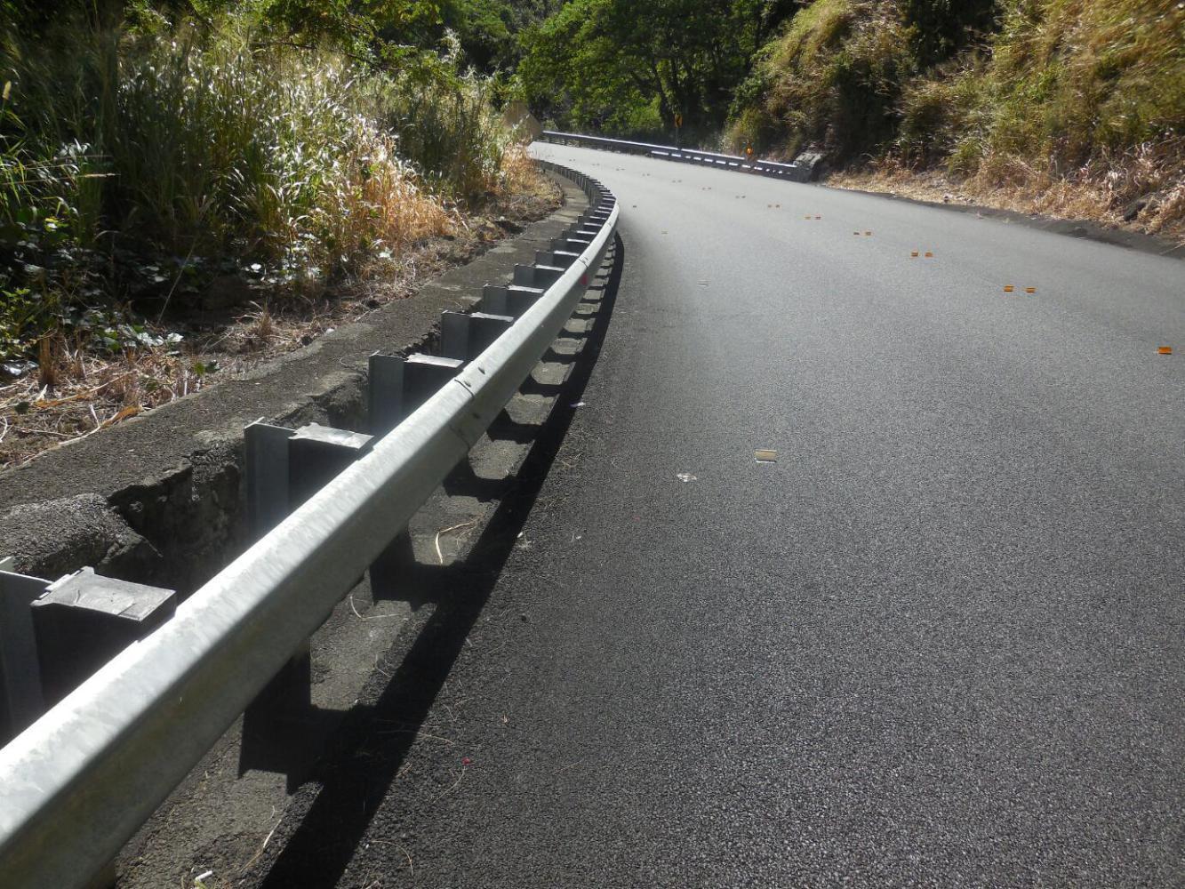 On the map, Ka'awali'i looked the the baby of the three. Hah. It was awful. It started out getting a lot of help from the State of Hawaii, which has been doing " safety improvements". One of the brilliant ideas for this was to install a steel guardrail in much of what otherwise could have been more shoulder for us. So that wedged us between fixed steel on one side and speeding steel cars on the other. There was shoulder to the left of the guard rail, but it was only marked by occasional reflectors. We felt like we were out in the middle of the road.