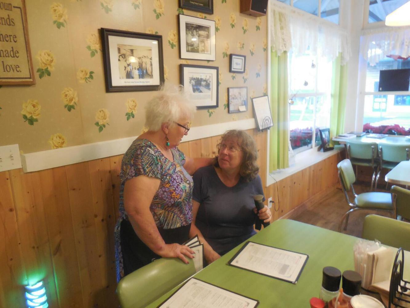 When we dragged ourselves through the door, we were really warmly greeted by the managers, Jory and Annelle.We felt like family members, arriving home. We planned to eat supper at "Gramma's" - "downtown", about a block and a half away. Seeing that Dodie looked pretty beat, Jory offered to run us down there in a car. But no, we stubbornly trudged down on our own.