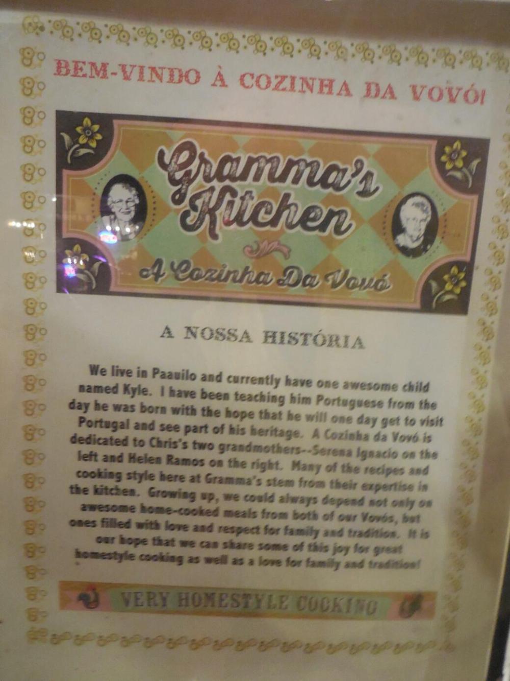 Gramma's is a family style operation too. It is named for the two Portuguese grandmas of the owner. We were again greeted like family, by grandma. This white haired lady was however not one of the grandmas referenced in the name of the restaurant. Rather those grandmas were our greeter's mother and mother-in-law. Time goes by, so this was a second generation, but genuine, Gramma.