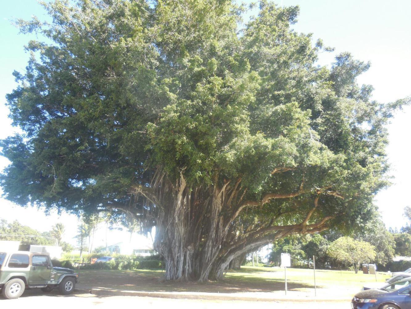 The other special attraction is the Kamehameha Rock. First off, to be clear, there are definitely two rocks or stones. One, the Naha Stone, is in Hilo. It is the 5-7,000 pound item that Kamehameha flipped over, establishing his future as ruler of all Hawaii. Then there is the little 1,000 pound stone near Kapa'au. That is the one we checked out. The concensus seems to be that Kamehameha moved it up from the beach to this point. A road crew tried to remove it by putting it on a wagon, but it repeatedly fell off. So they concluded it wanted to stay there. For the second year in a row I tried to move it myself. But it seems to be stuck? Clearly, if Kamehameha could flip the 7,000 pound one, he could move the little one. Dodie points out that he need not have bench pressed it, but could have rolled it. I tried rolling it too, but as I say, it seems stuck!