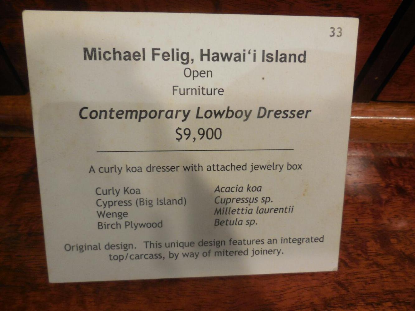 In Hawi we walked through all the shops, waiting for Bamboo to open. Amid the tourist trinkets is some genuinely high quality artwork and furniture, as well as smaller beautiful pieces, like cutting boards, made from koa. We found some more of those koa rocking chairs - each a treasure and priced $6,000-7,000, plus koa tables and sideboards. No fine furniture piece made from koa costs under $6,000.