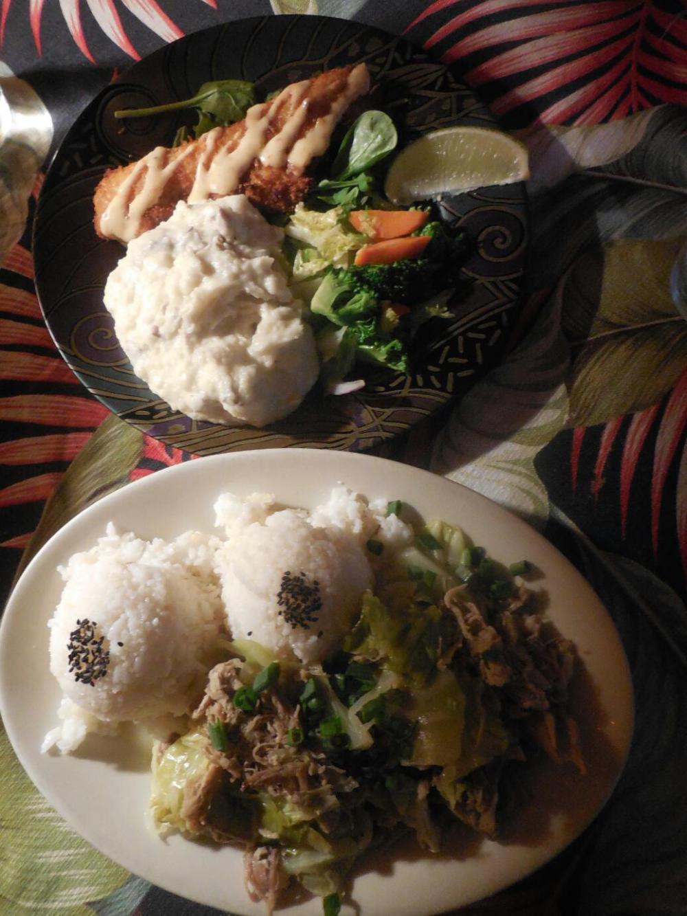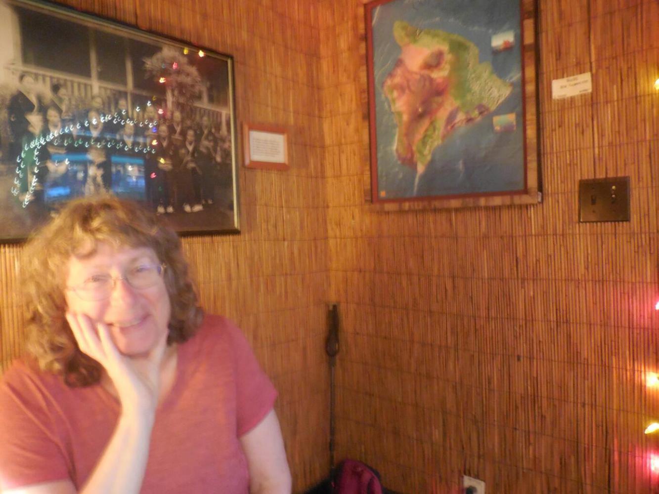 During our time in Hawaii we have been feeling that the food overall is weakening us. Yes, there is the good fruit, but you can't eat only fruit. Other food we've been getting just has not felt healthful. I put this as a paradox to Dodie, since lots of magazine articles extoll the available Hawaiian food. We think the answer is that you can get good stuff, but the cost is too high to be realistic. Bamboo, for example, uses as much local product as possible. Great. The only thing, Dodie's Coconut Coated Mahi Mahi was $27. My Kalua Pork with Cabbage was in the lowest price category, at $18. But ok, it was all good. And we expect to have a lot of strength until we eat some more Love's bread at breakfast tomorrow.