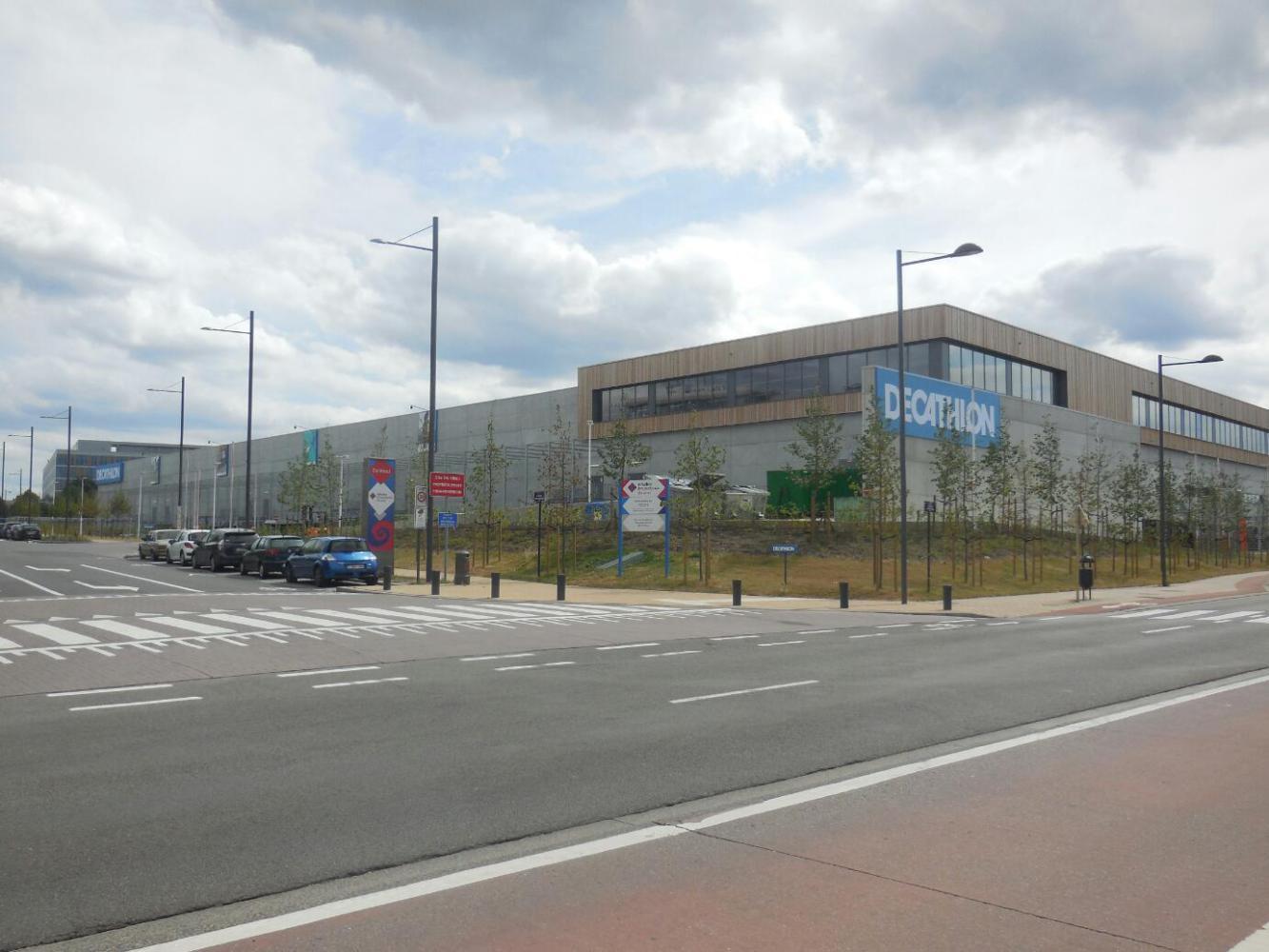 It was easy to spot the Decathlon (sporting goods super store) that we had scoped out from home, because the thing was literally a square city block in extent. Of course, there was a 100% chance that they had the Campingaz that we are always on the lookout for. We were 7 km in to the country by this point. That's quite a difference from Florida, where the first time we travelled 1000km before we found the stuff, and where the second time we got my brother to drive us to a carefully identified Bass Pro that had assured us by phone that they had the gaz.