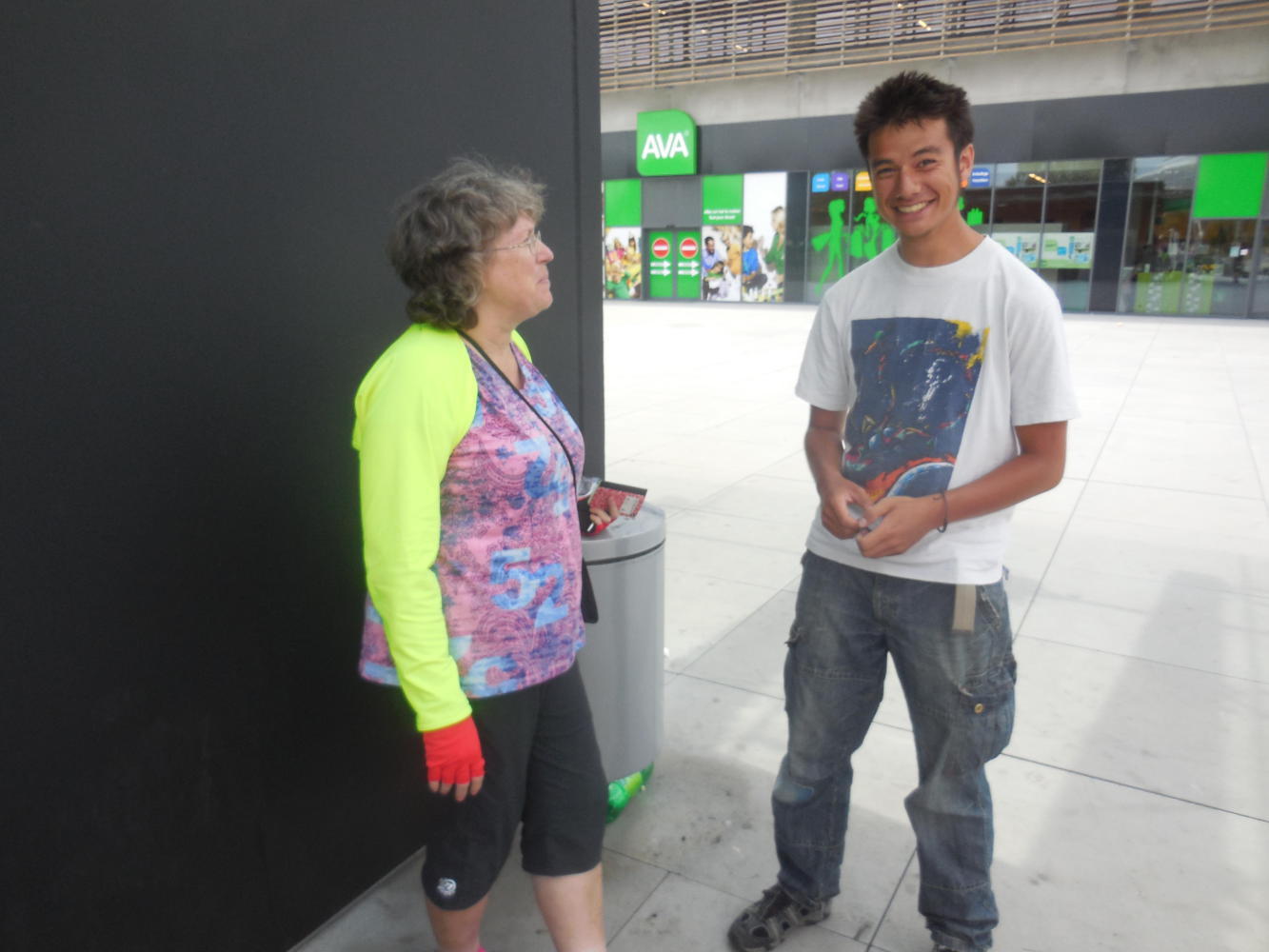 Dodie parked me and the bikes outside Decathlon, and while I waited outside, a young man came over to chat. To my surprise he was English speaking. Normally being parked outside turns into a French lesson for me. The young man, "DJ", had just completed a short cycle in the south of France, and his girlfriend is currently going Belgium to Portugal. I was pleased to be able to introduce him to Crazyguy, and to answer his questions about cycling in Canada