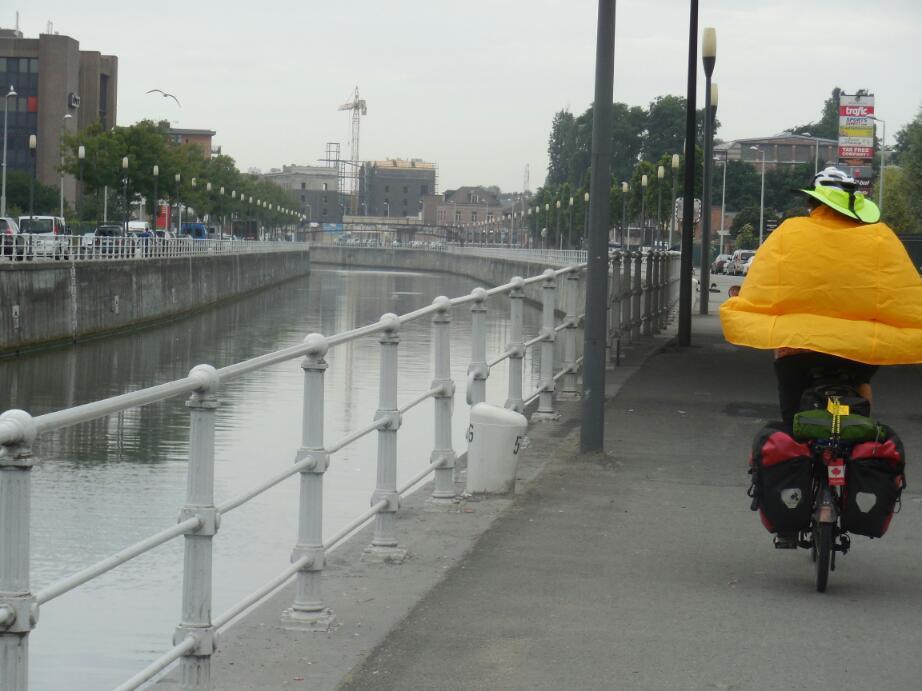 We quickly reached the first canal in Brussels. Dodie is trying out her new rain cape. we got this at home after seeing them widely used in Amsterdam. Fortunately the rain went away for most of the day. The jury is still out on the cape.