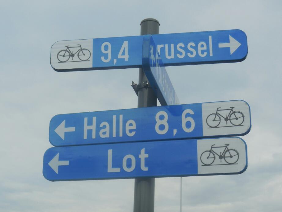 It took only a little bit of casting around, before we found ourselves on the canal, which was our ticket out of the area. The canal is the Brussels to Charleroi, which is a branch of the Canal du Centre. We don't know much about that one, but suspect it might go all the way to Paris. There are some kind of long distance bike routes in this area, with names like RAVel 1 and RAVel 3 plus various other bike routes and signage. We did find the organization behind these, online while at home, and did try to buy one of their publications from Cartovelo, but in the end went with a track that we developed on our own, with the help of Google Maps.