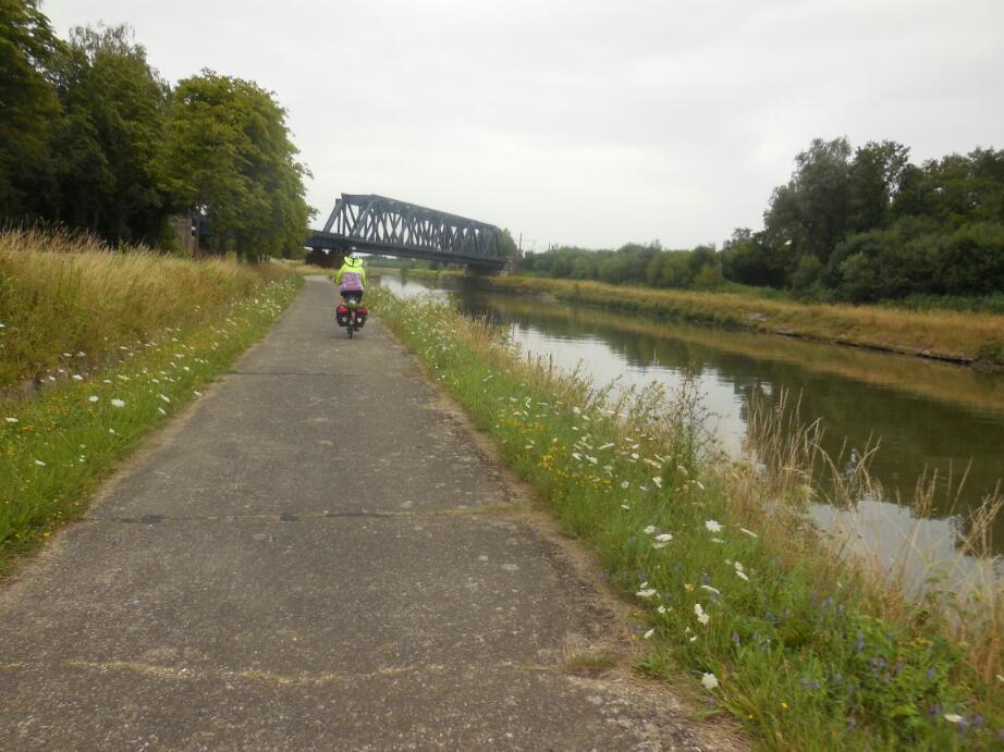 Unlike the situation in a place like Brussels old city, there is little to see along a canal. There is even less than on roads in the countryside. That turns out to be helpful, since I am typing this lying down, in the tent, in the rain. It's not a good position for making lengthy descriptions of anything!