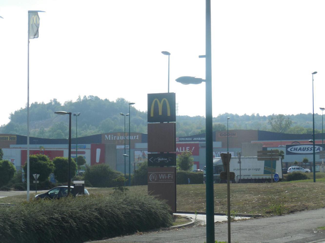 We quite quickly found our way (errm, Dodie did) to the road to Metz. This is conveniently called the Route de Metz. It is D903. We passed through the local equivalent of a big box store area. As part of this there was a McDonalds. Since we had drunk our coffee and hot chocolate in cups in the hotel, we had none in our thermos's. So Dodie had the idea of seeing about getting some at McDonalds. I got sent in, indicating I still had the trust of the team even afte bakery expedition.