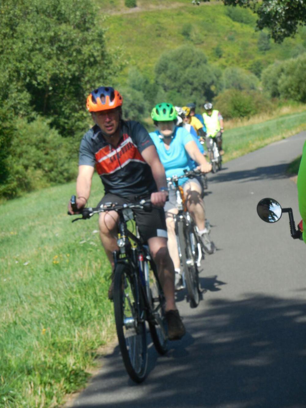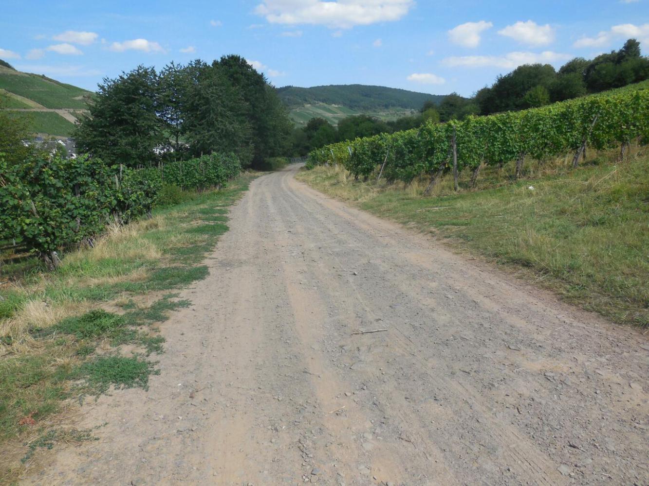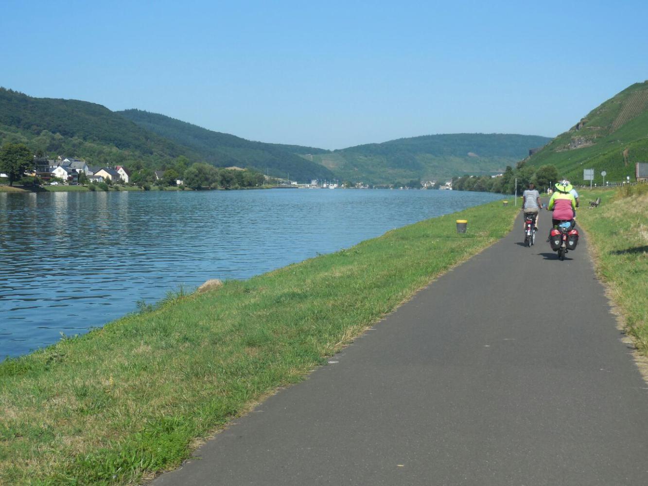 After Traben, the ride continued in much the same way, though there a couple of short stretches of unpaved path or gravelly road. The temperature rose slightly past 30, and a slight head wind did appear. Still, it was great. We did come to realized that we had mis-estimated the distance to Cochem, and that we were not going to make it. We were glad that we realized this later, or we would not have enjoyed our leisurely breakfast or the stop at Traben in the same way.