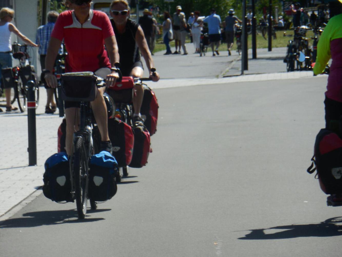 Again, our Canadian flags spawned quite a few conversations. We need a snappy comeback for when each new person cleverly (they think) asks us if we cycled from Canada. My current response is "No, we are too slow". In our turn we learned where people were coming from and for how long, etc. Most came from north - either the area around Duisburg or from Netherlands. None that we talked to had actually pedalled from these (quite close) places. Rather they had come by car (4 1/2 hours only to drive here from Friesland in the Netherlands), or had taken the train from Duisburg to Koblenz. Such train people also intended to take the train back. When I asked why not take two days and cycle home, each one looked at me like I was nuts. I think the train is just such an easy and natural solution for people here. So they use it to come to the absolutely prettiest part, and then bypass the just "very nice" bits.
